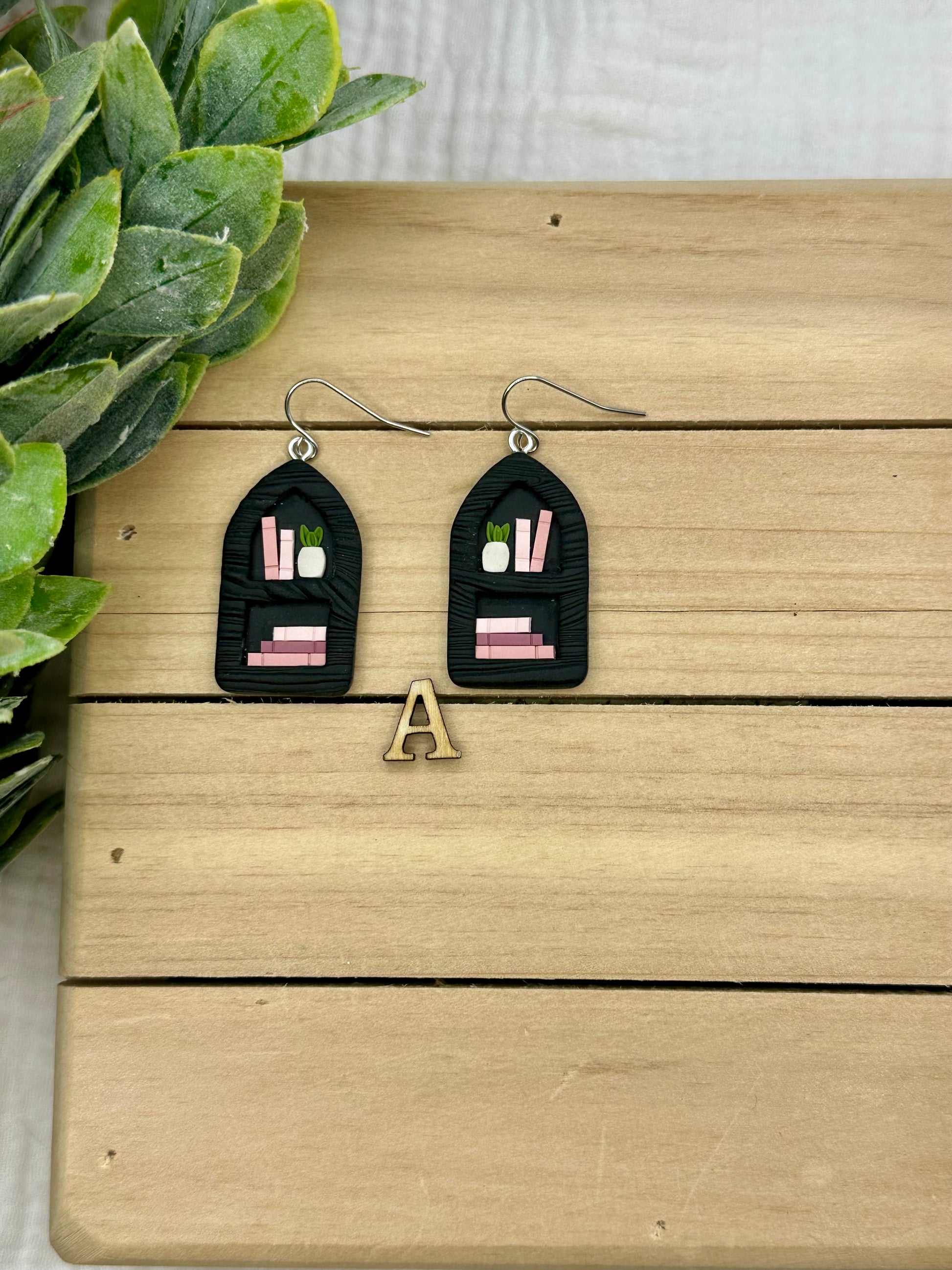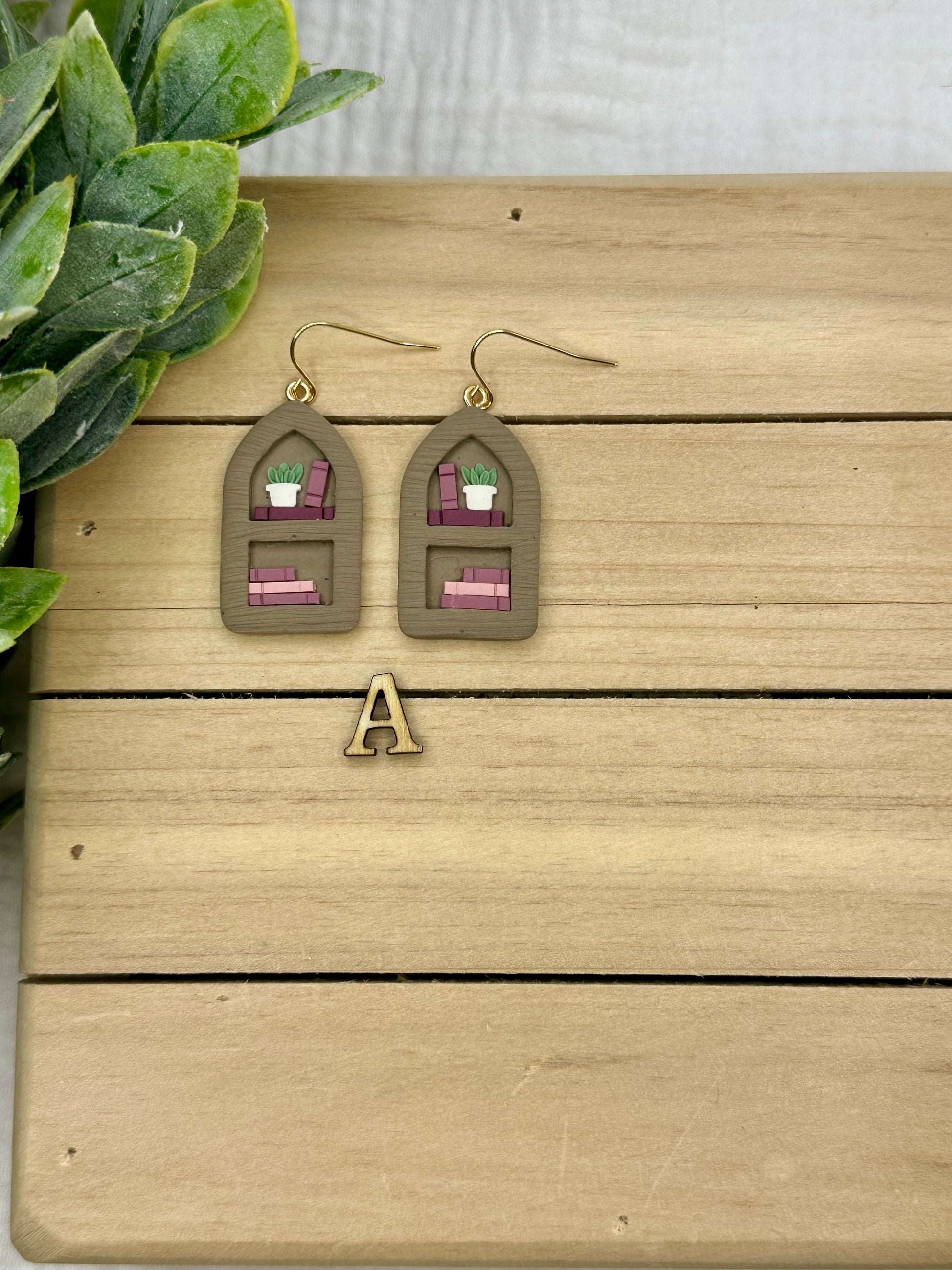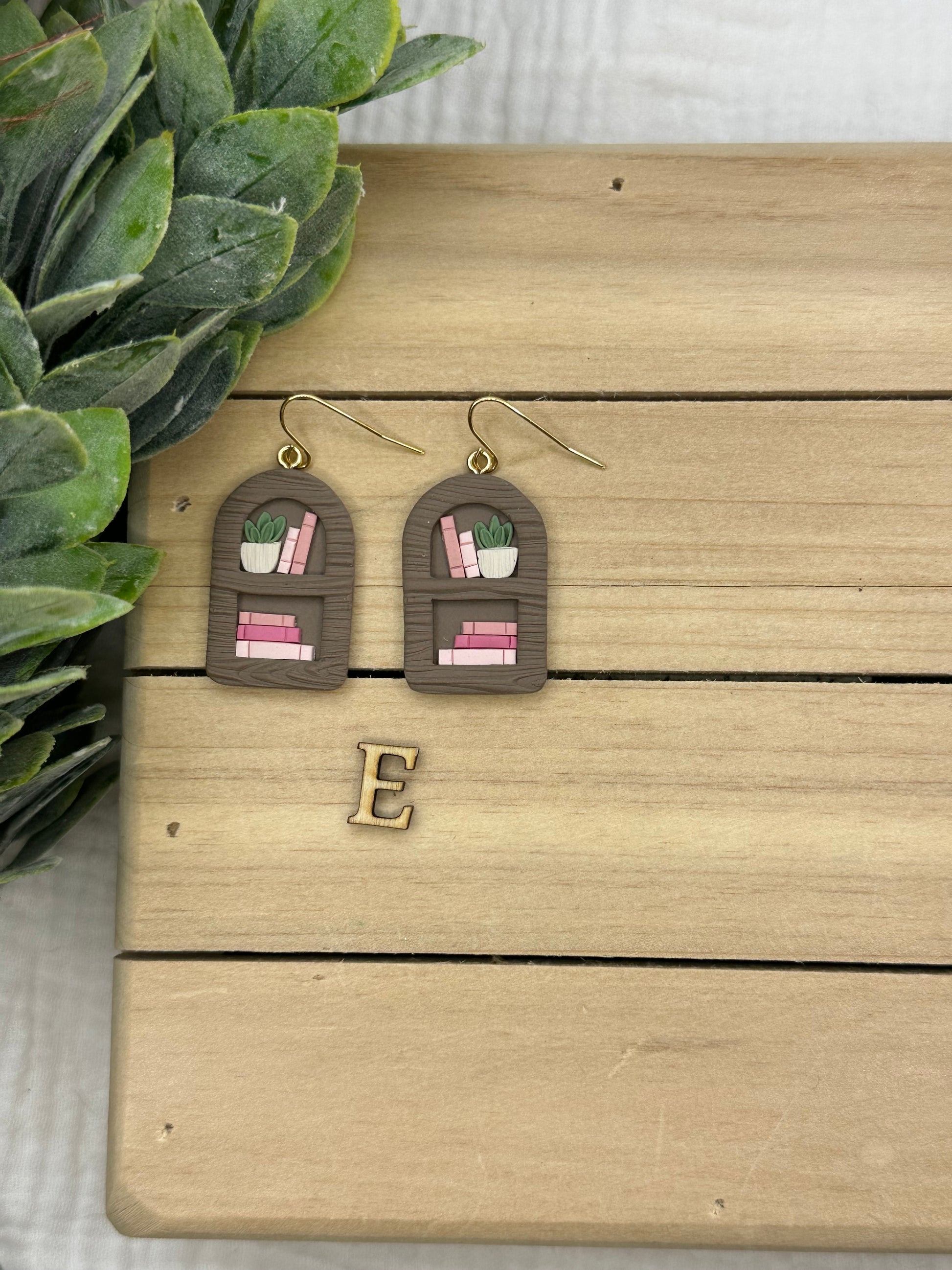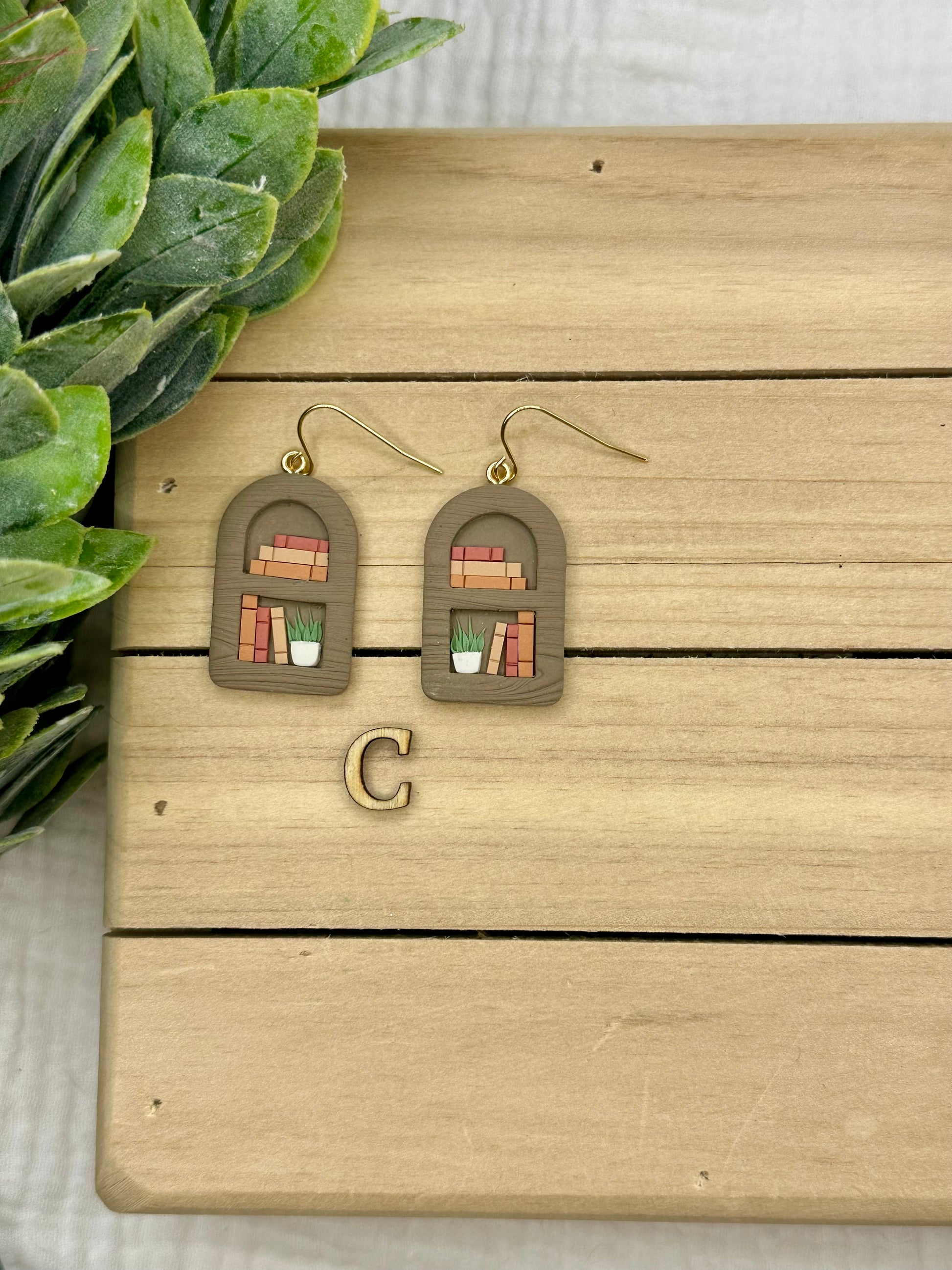Handmade polymer clay earrings. All on hypoallergenic surgical grade steel findings. Bookshelf earrings are handcrafted and either on surgical steel hooks or gold coated surgical steel hooks