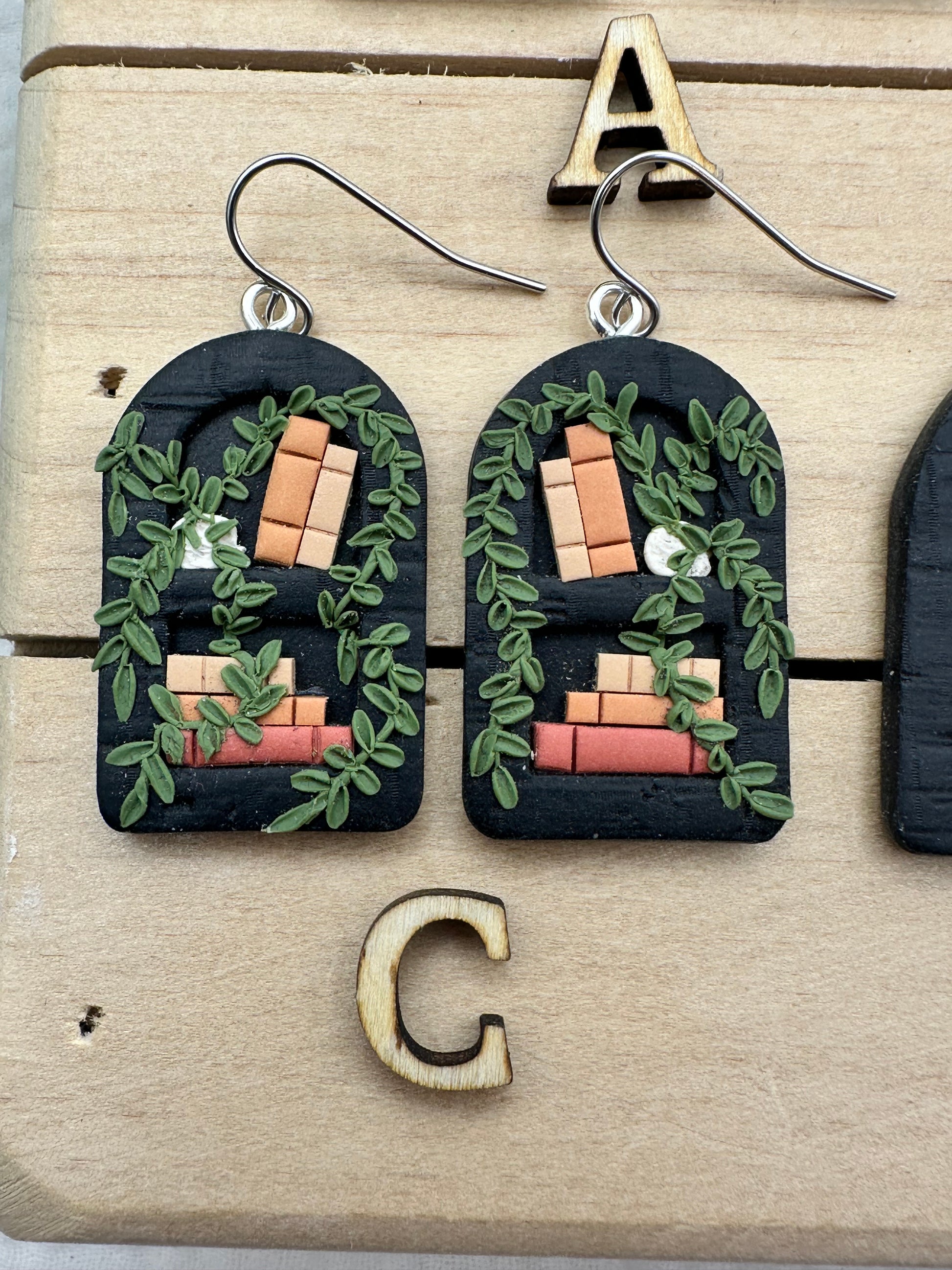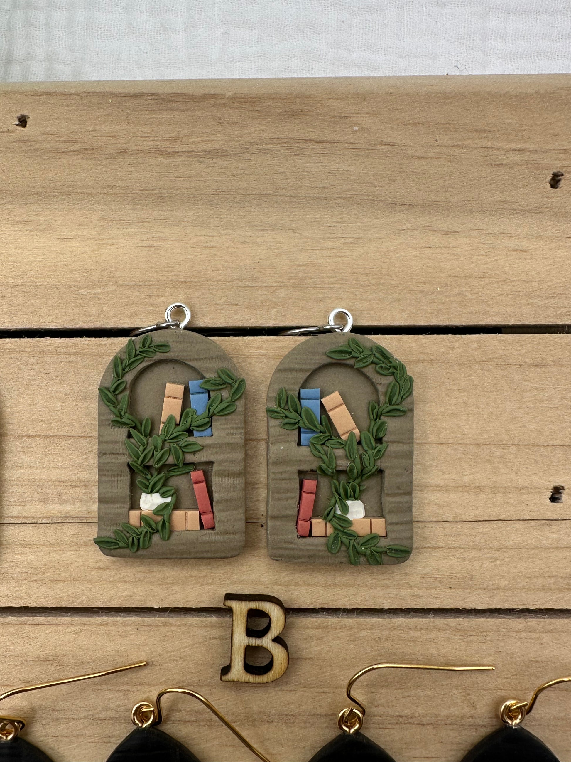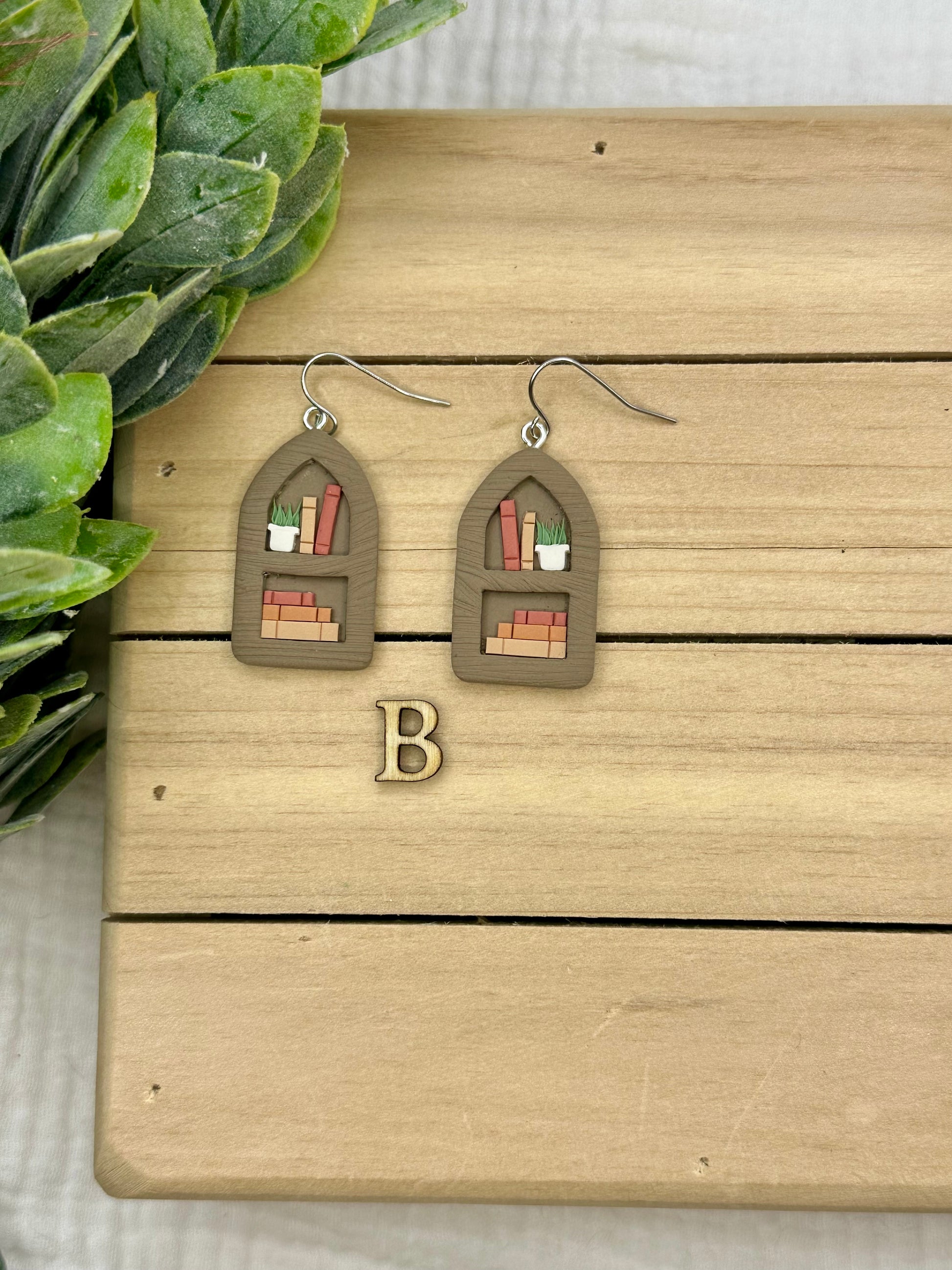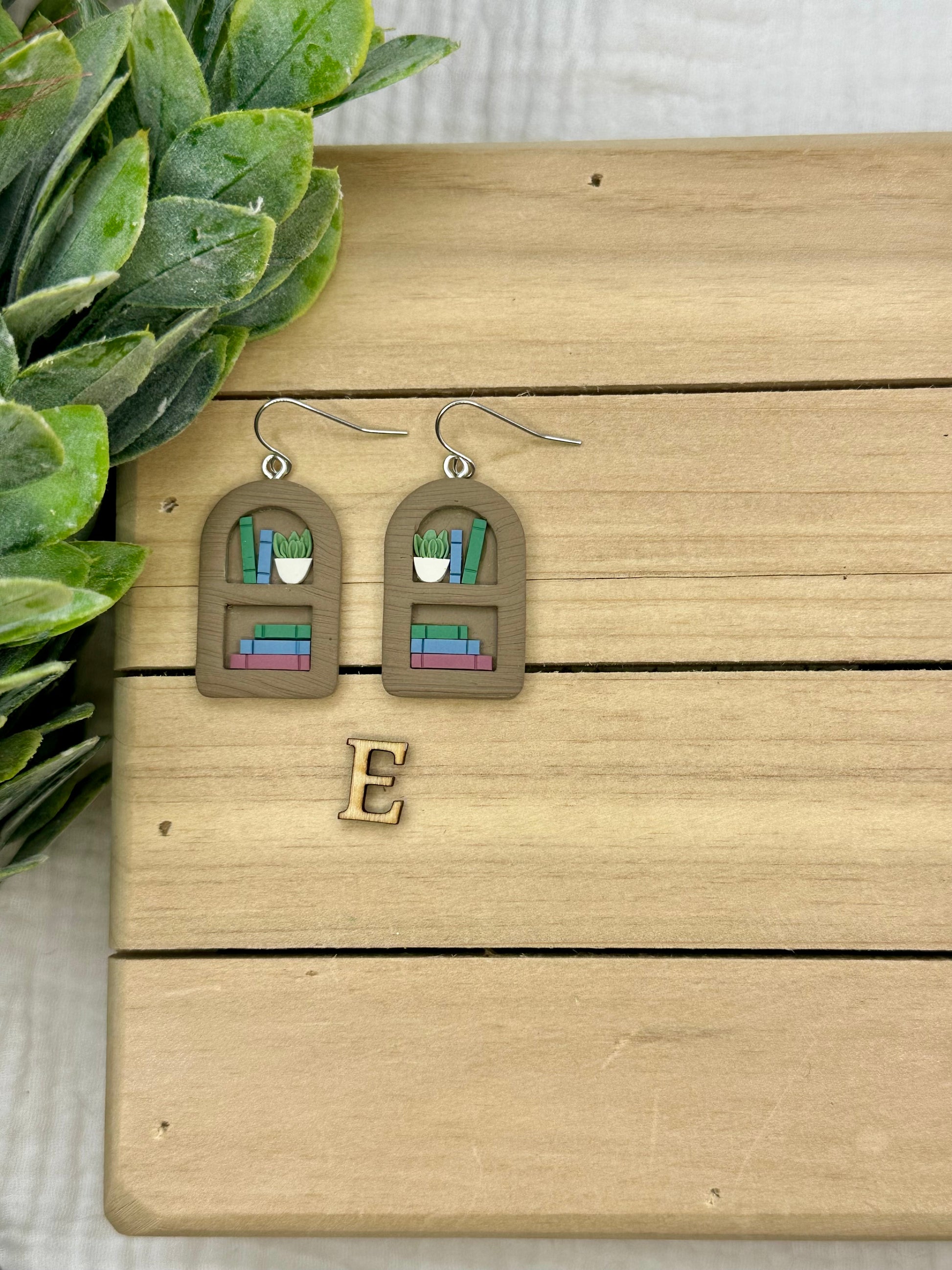 Handmade polymer clay earrings. All on hypoallergenic surgical grade steel findings. Bookshelf earrings are handcrafted and either on surgical steel hooks or gold coated surgical steel hooks
