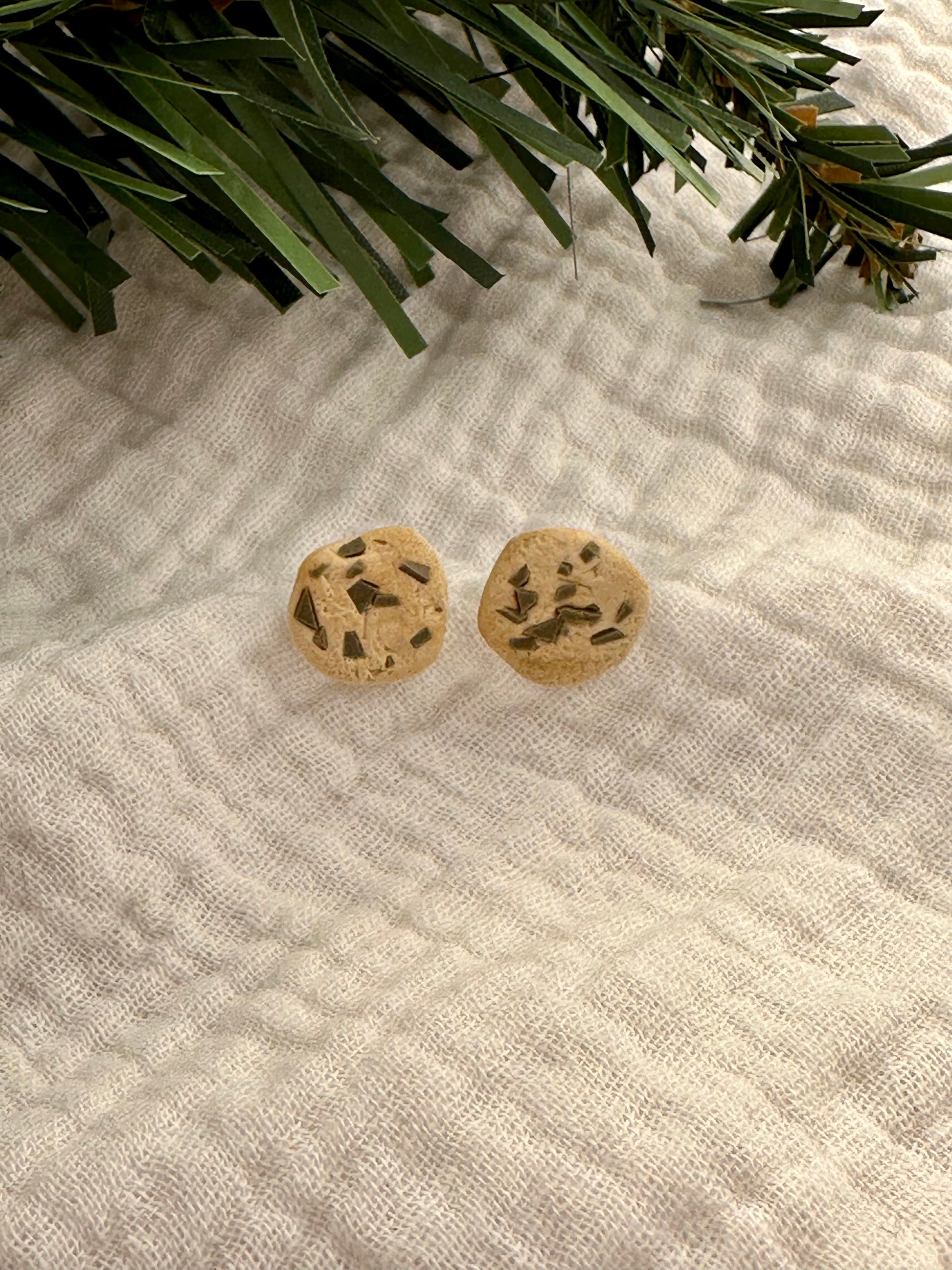 Handmade polymer clay earrings. All on hypoallergenic findings. Chocolate chip cookie studs