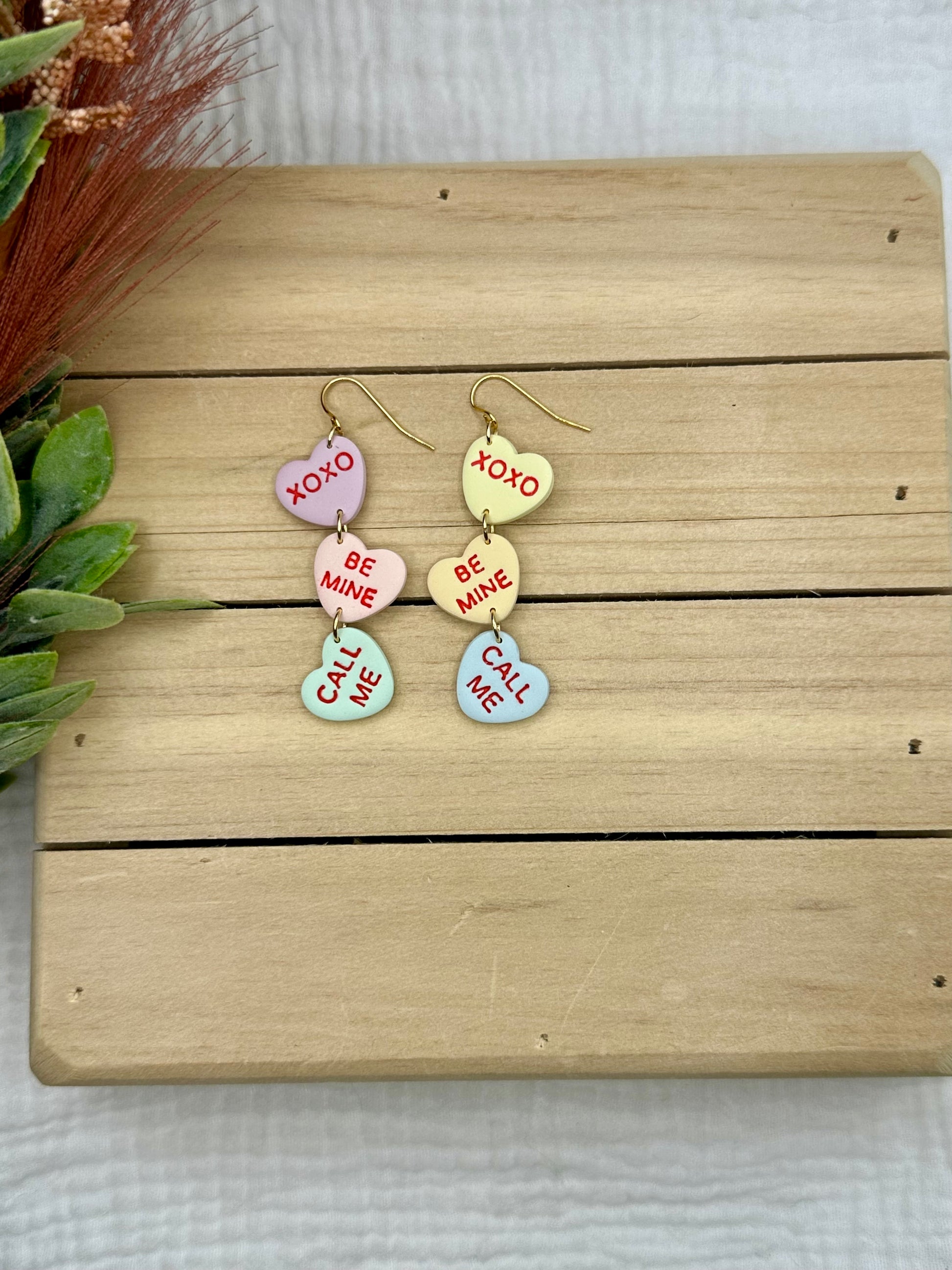 Handmade polymer clay earrings. All on hypoallergenic surgical grade steel findings. All on surgical steel posts or gold coated surgical steel, choose between large dangles, 3 drop dangles, or studs