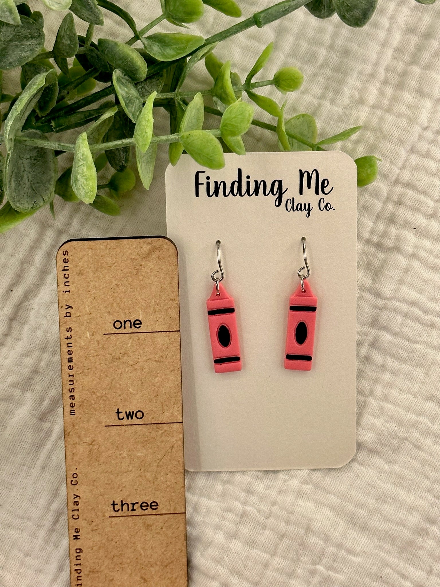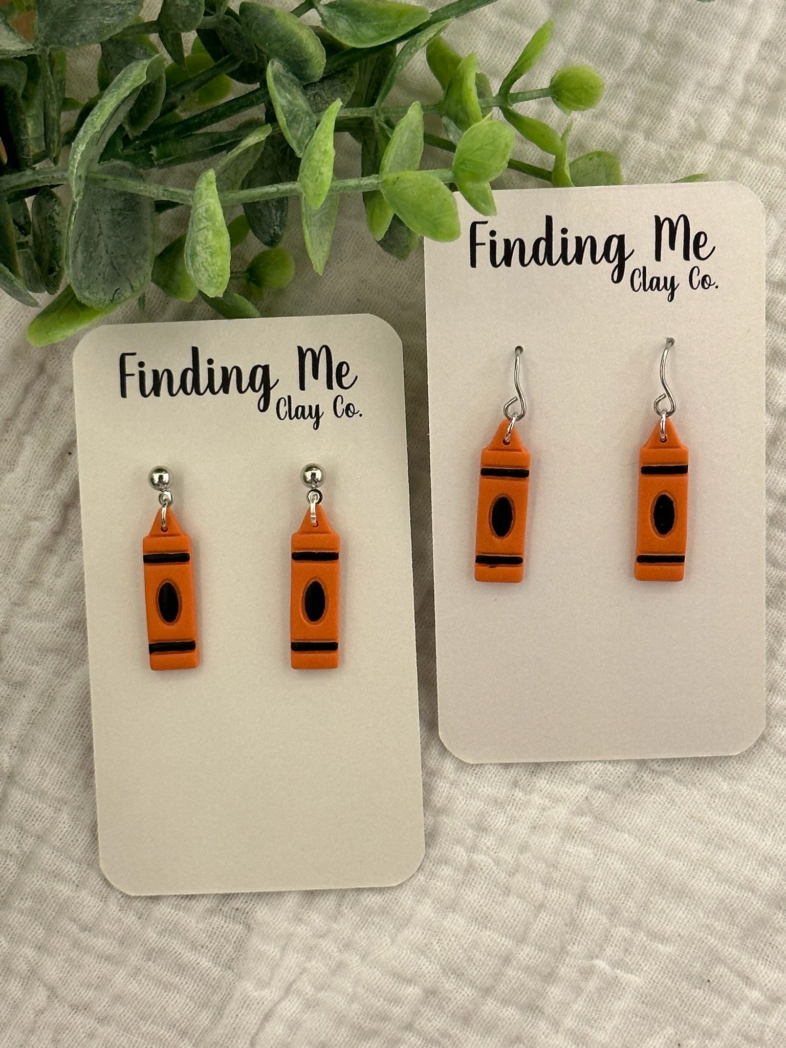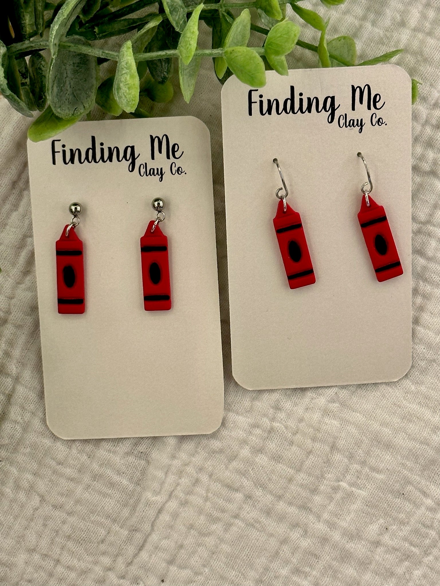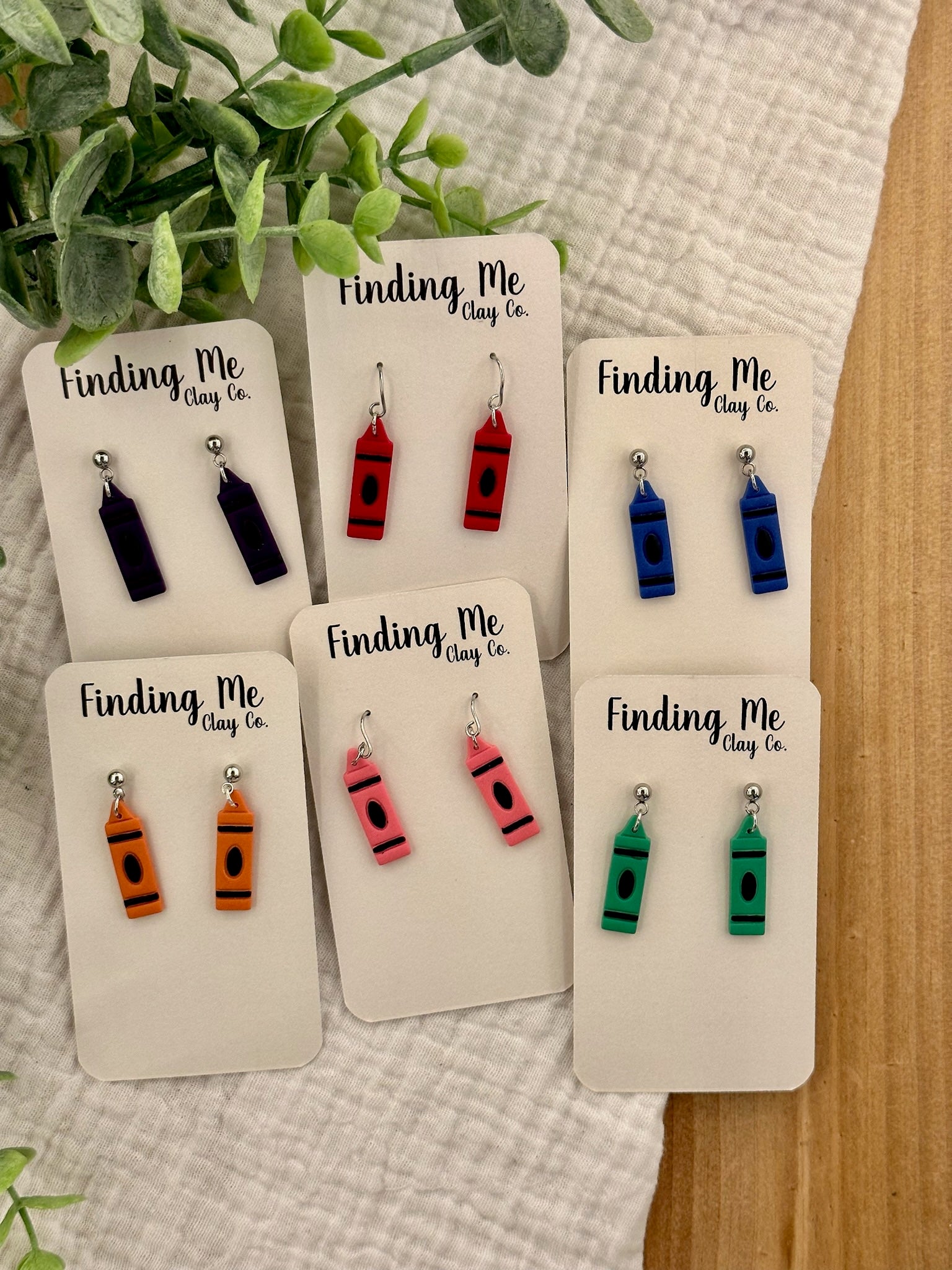 Handmade polymer clay earrings. All on hypoallergenic findings. Crayons on both silver flat post and hooks