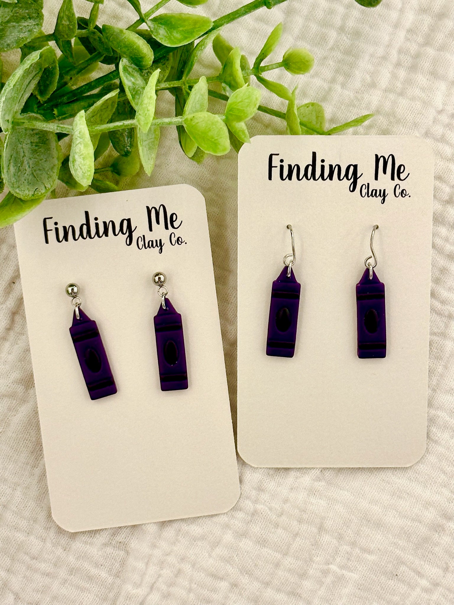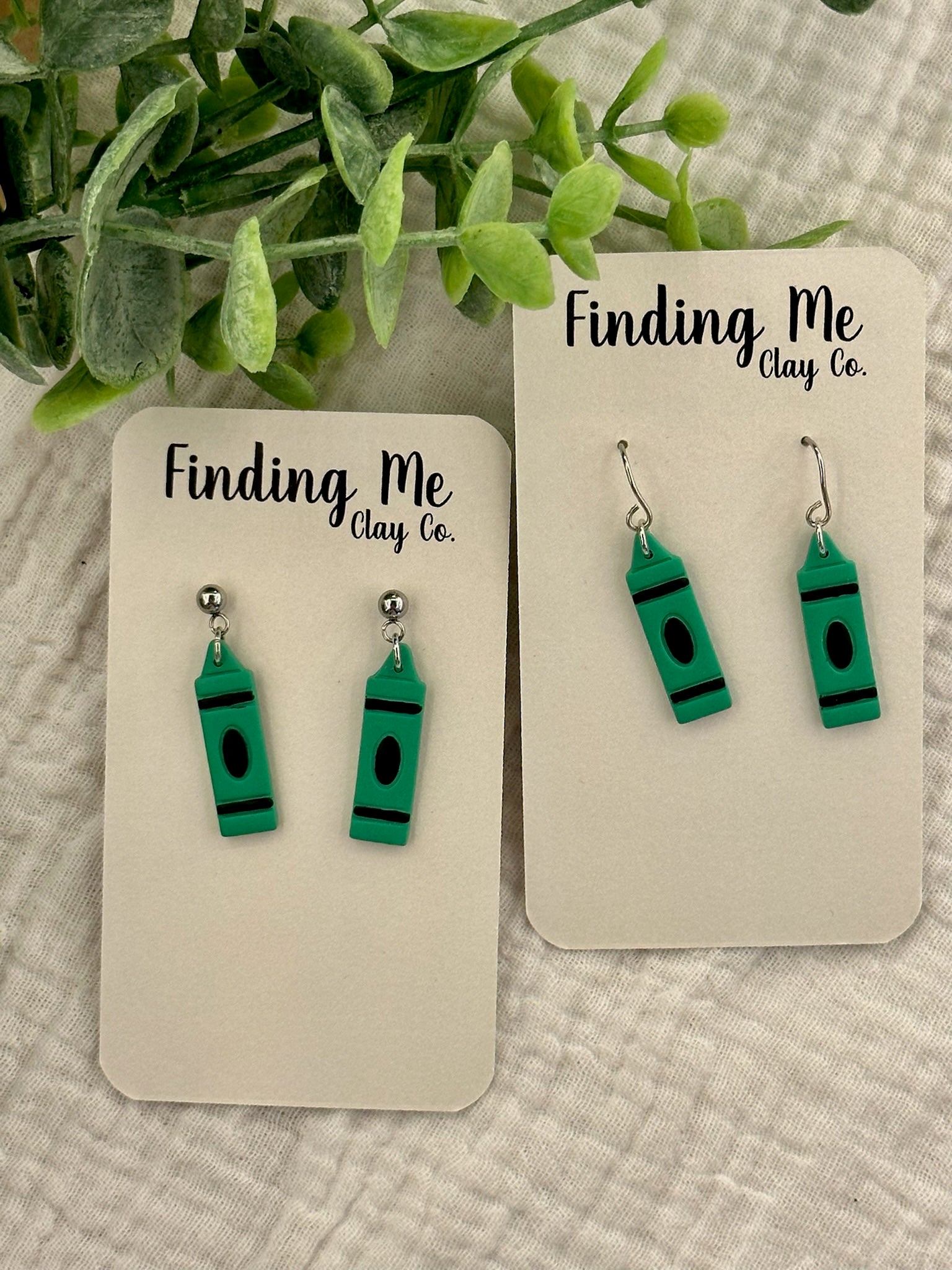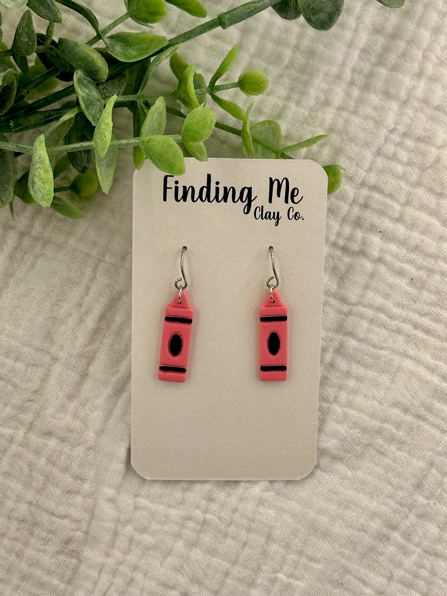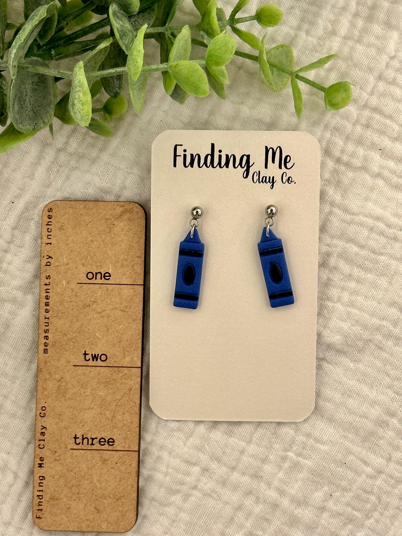 Handmade polymer clay earrings. All on hypoallergenic findings. Crayons on both silver flat post and hooks