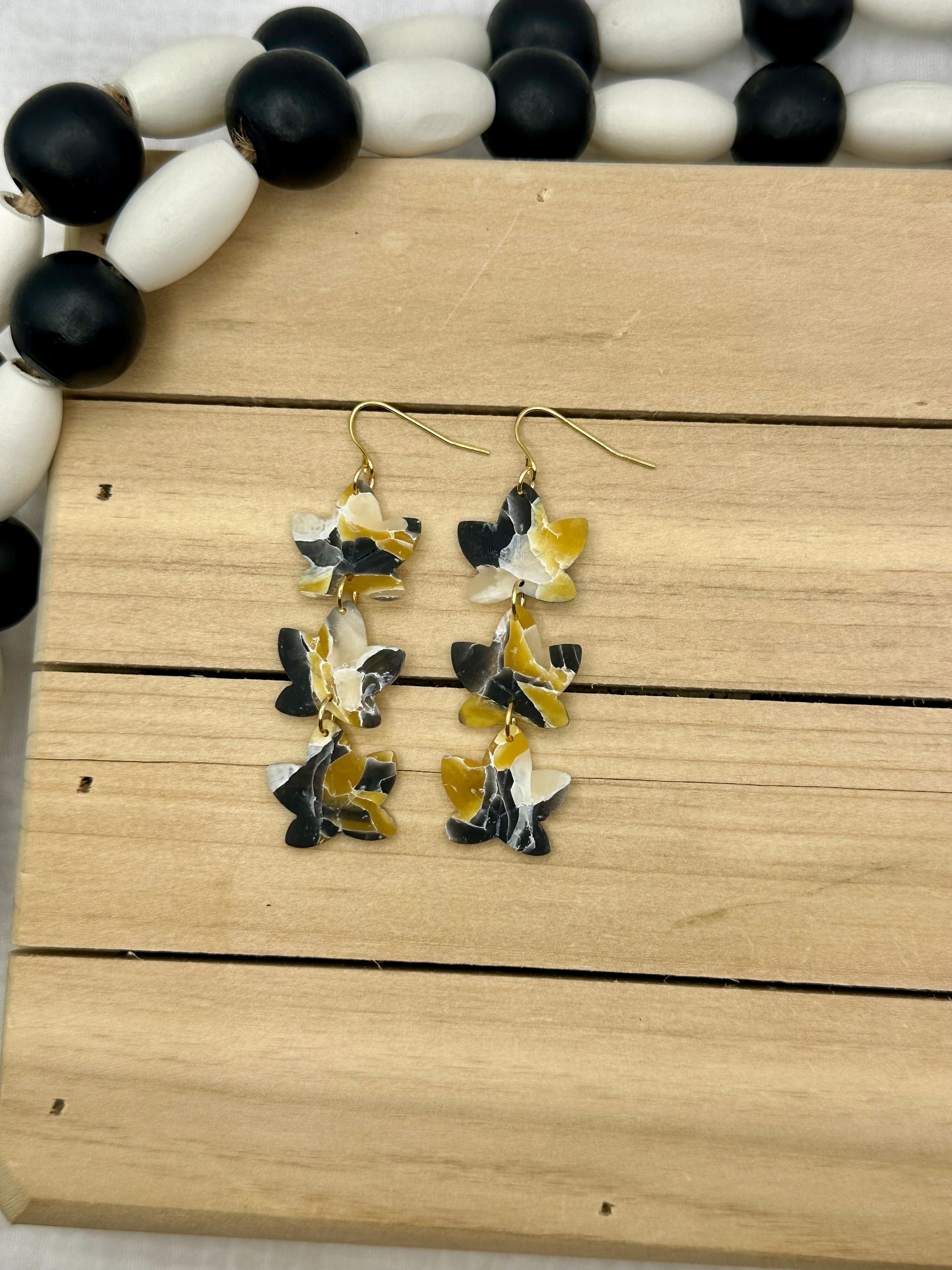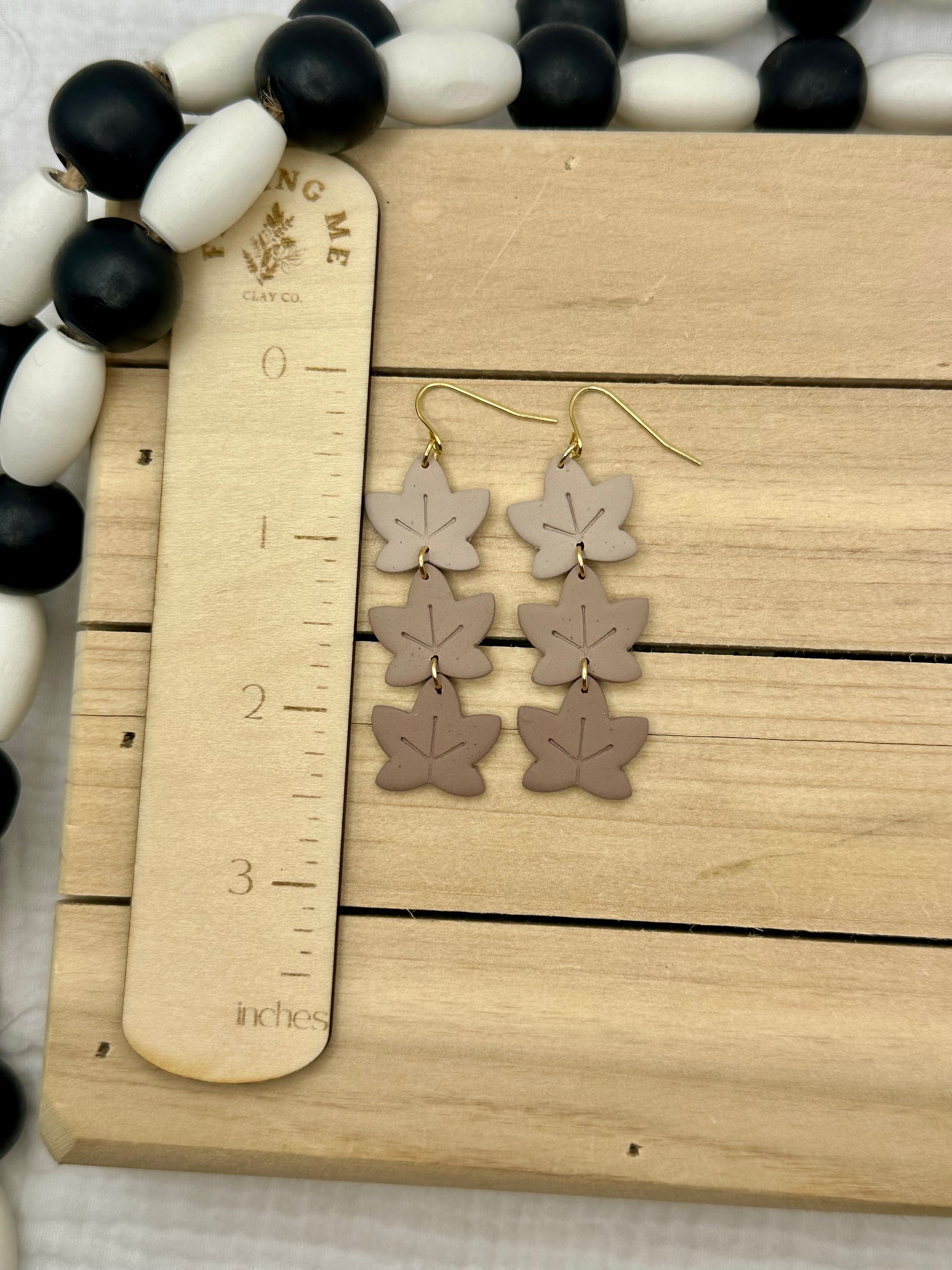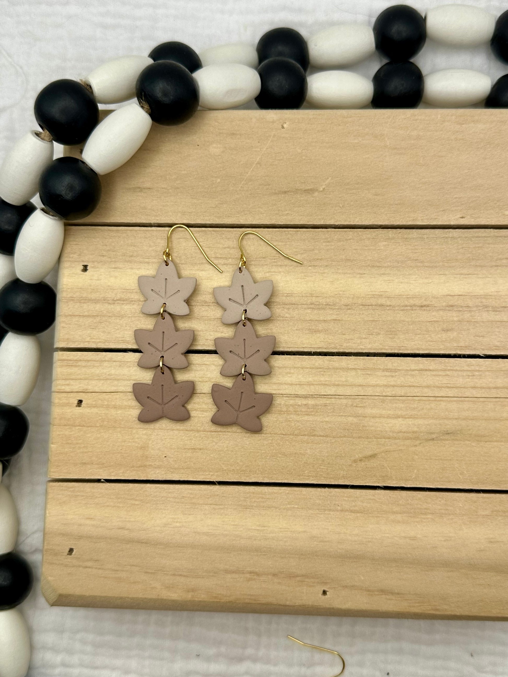 Handmade polymer clay earrings. All on hypoallergenic surgical grade steel findings. Fall leaf drops in various colors on gold coated hooks