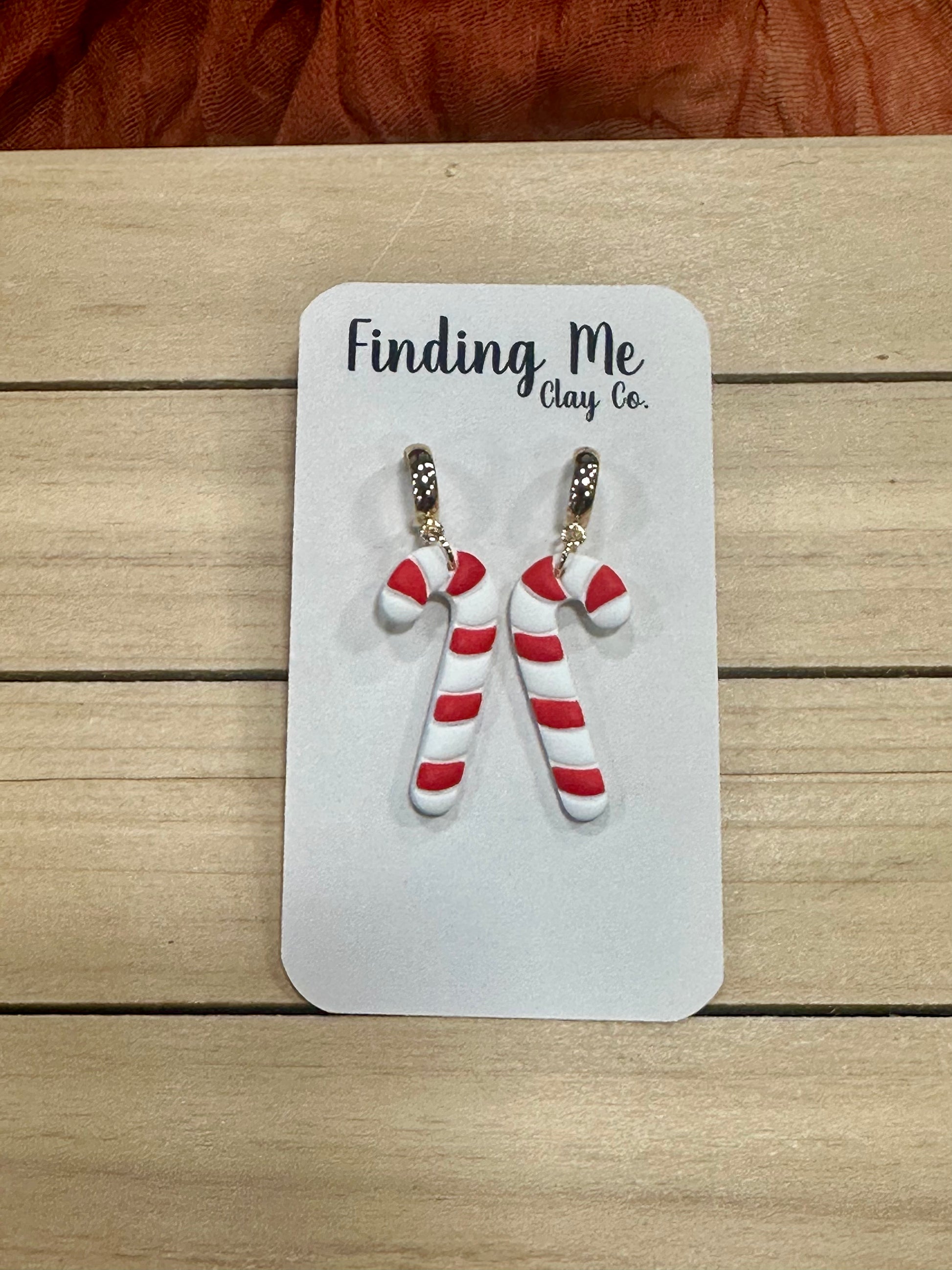 Handmade polymer clay earrings. All on hypoallergenic surgical grade steel findings. Candy cane on Flat post