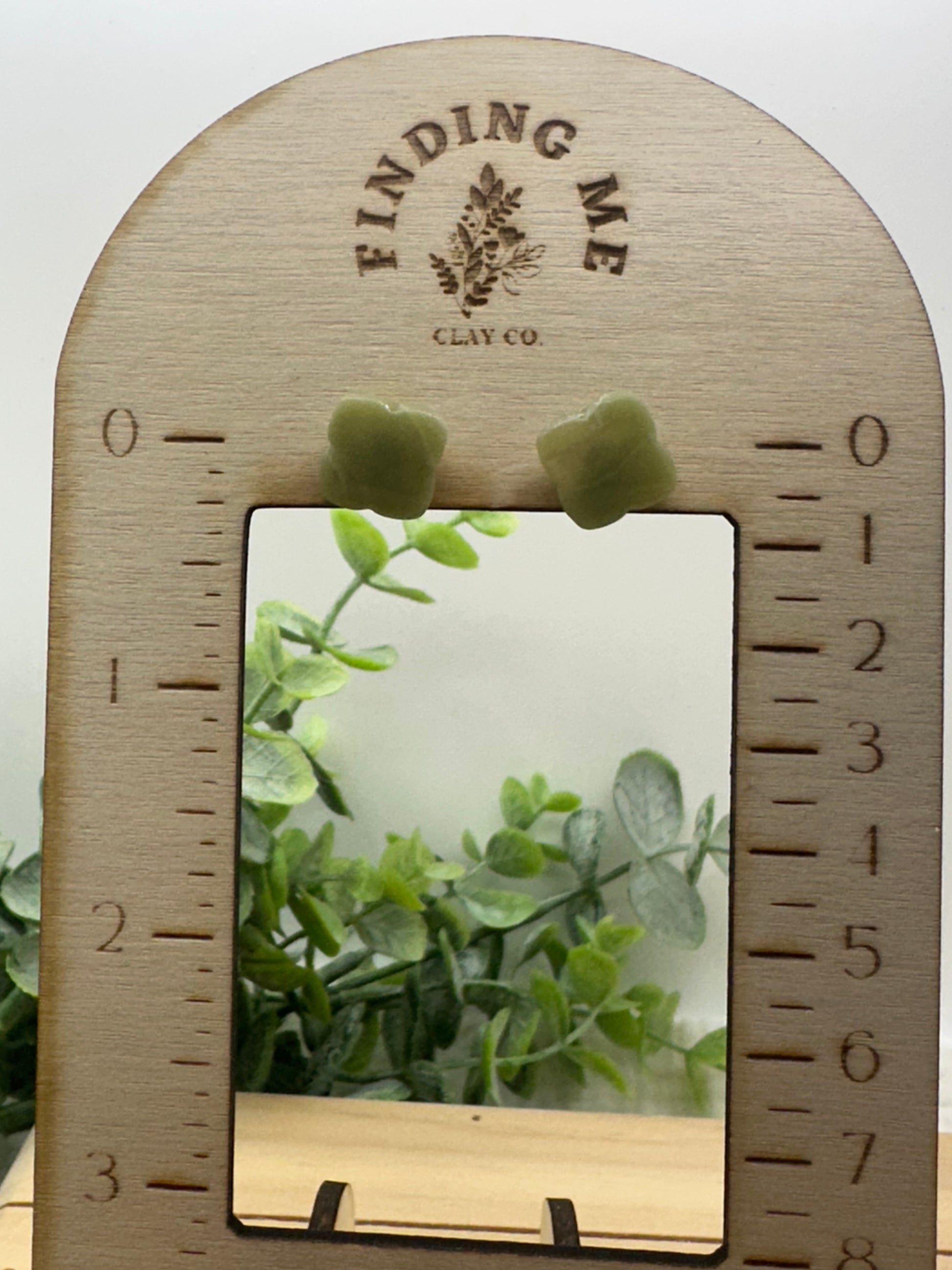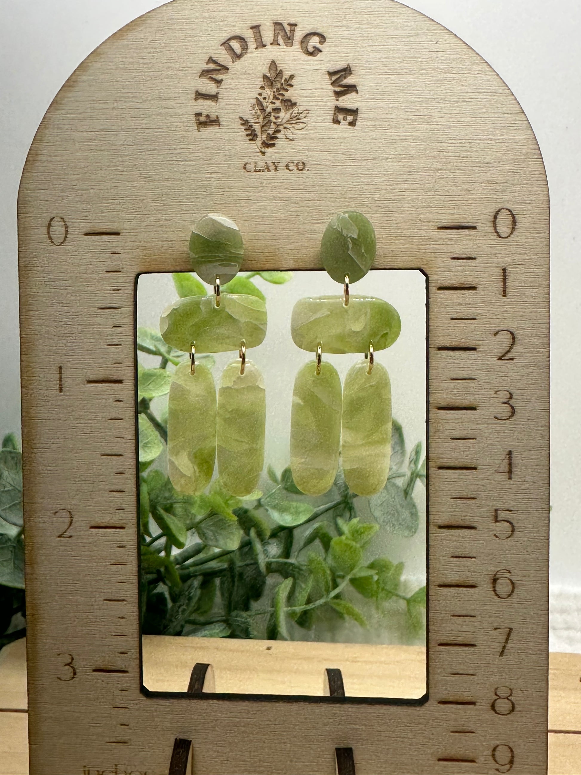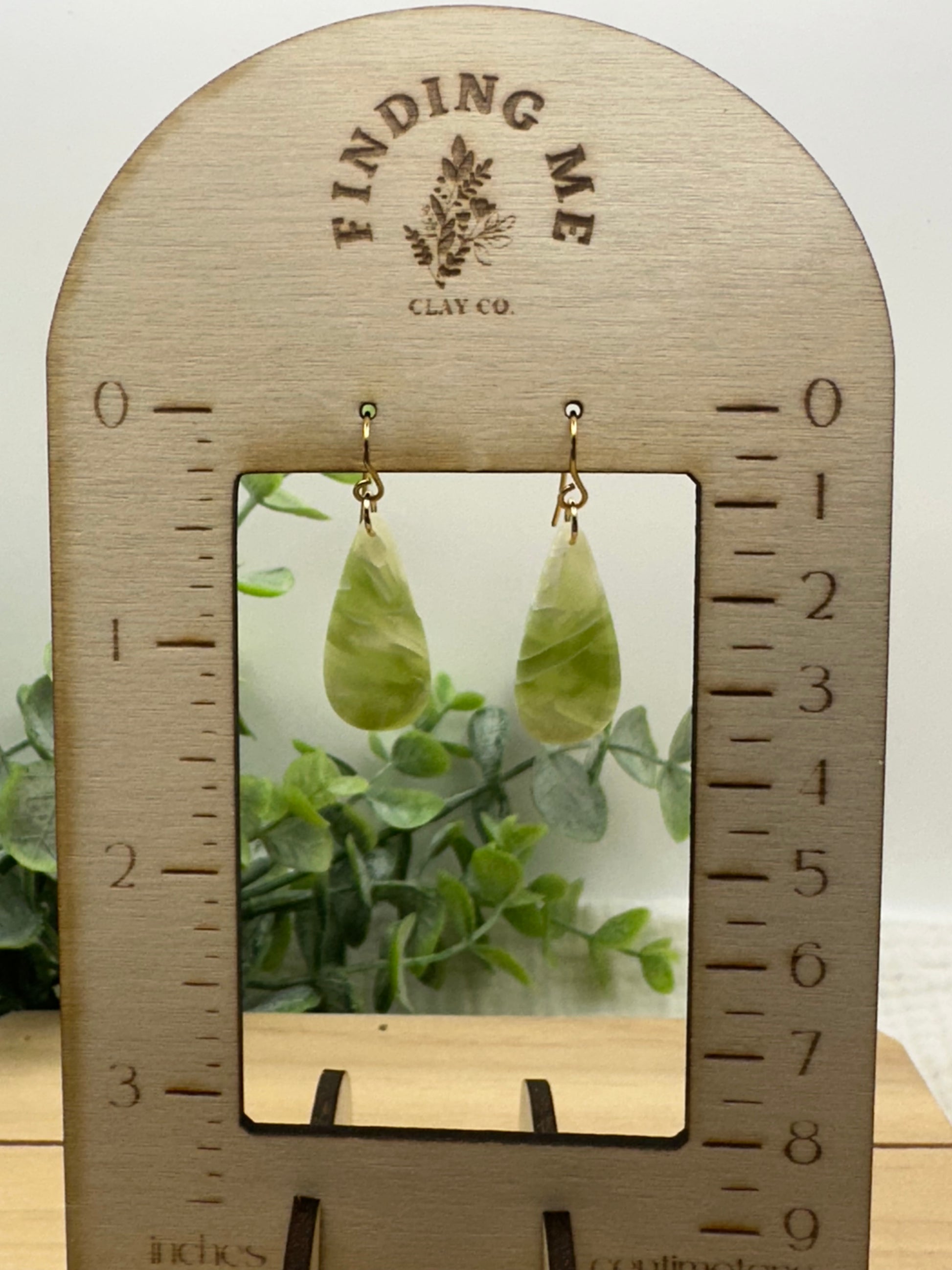 Handmade polymer clay earrings on surgical grade steel findings. Sage green semi translucent marbled on gold findings
