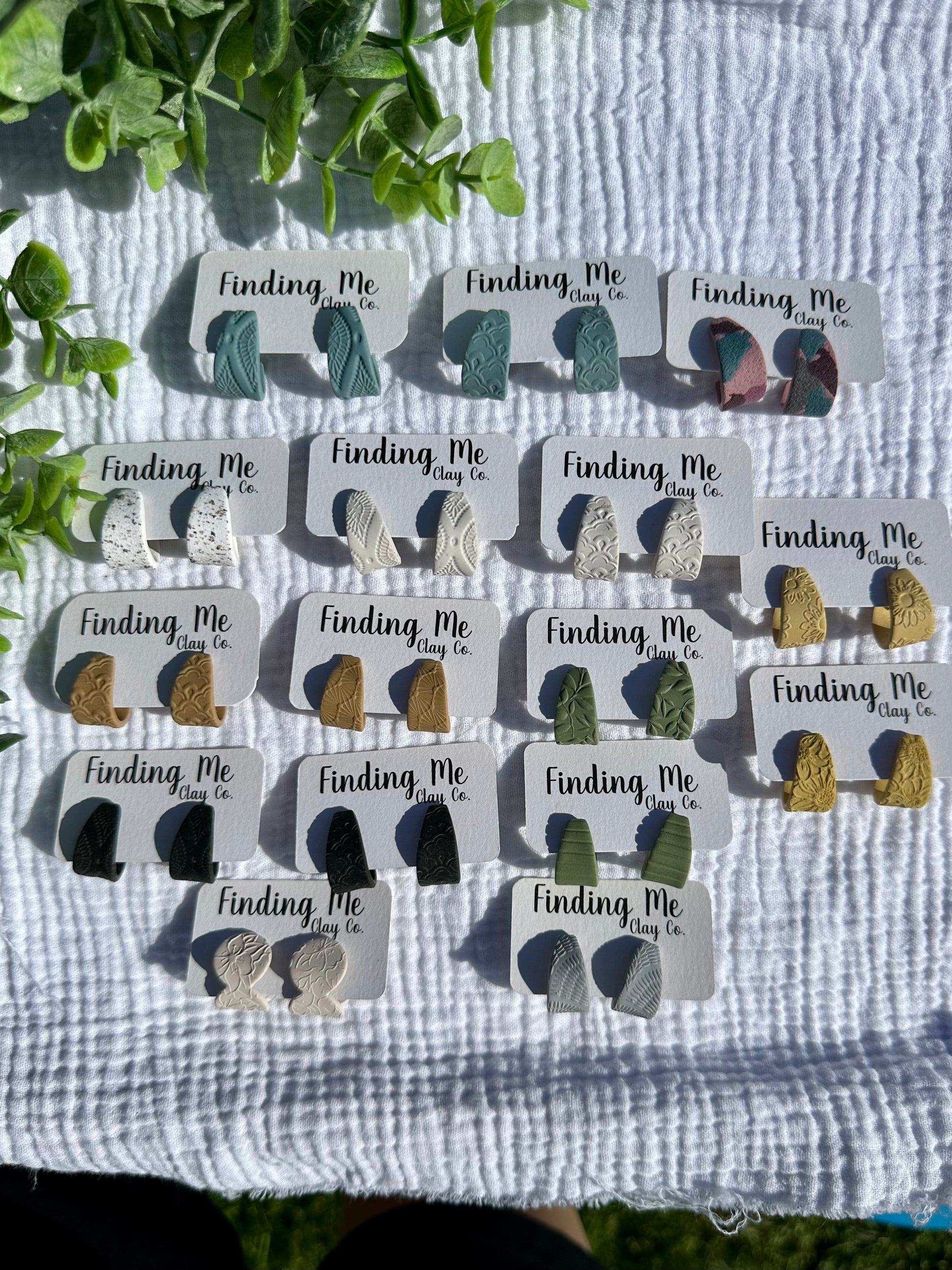 Handmade Polymer Clay Earrings. These Huggies take studs up a notch, Gently flex them to get on your ear. With the placement of the post you can choose to not wear a back as well