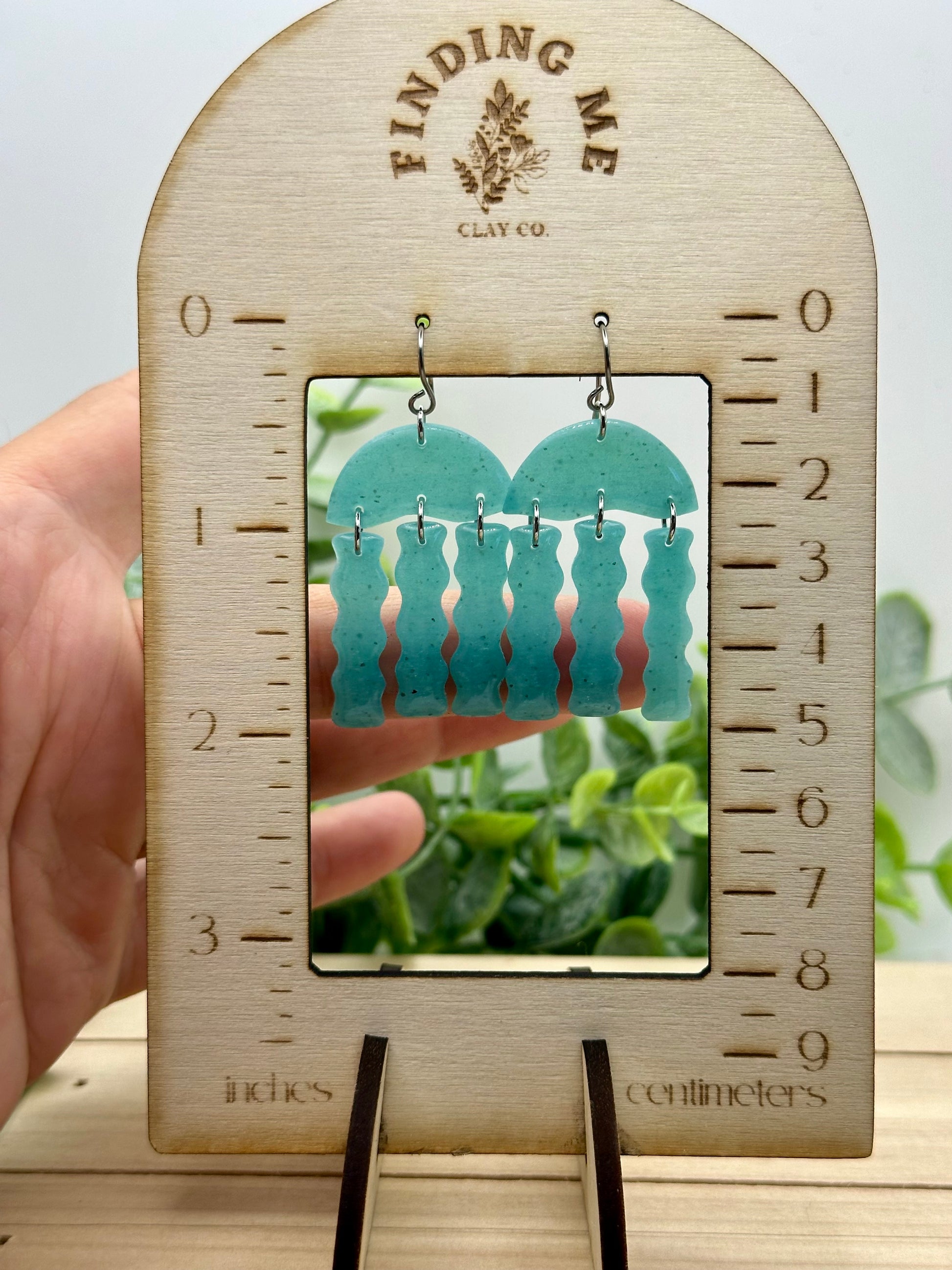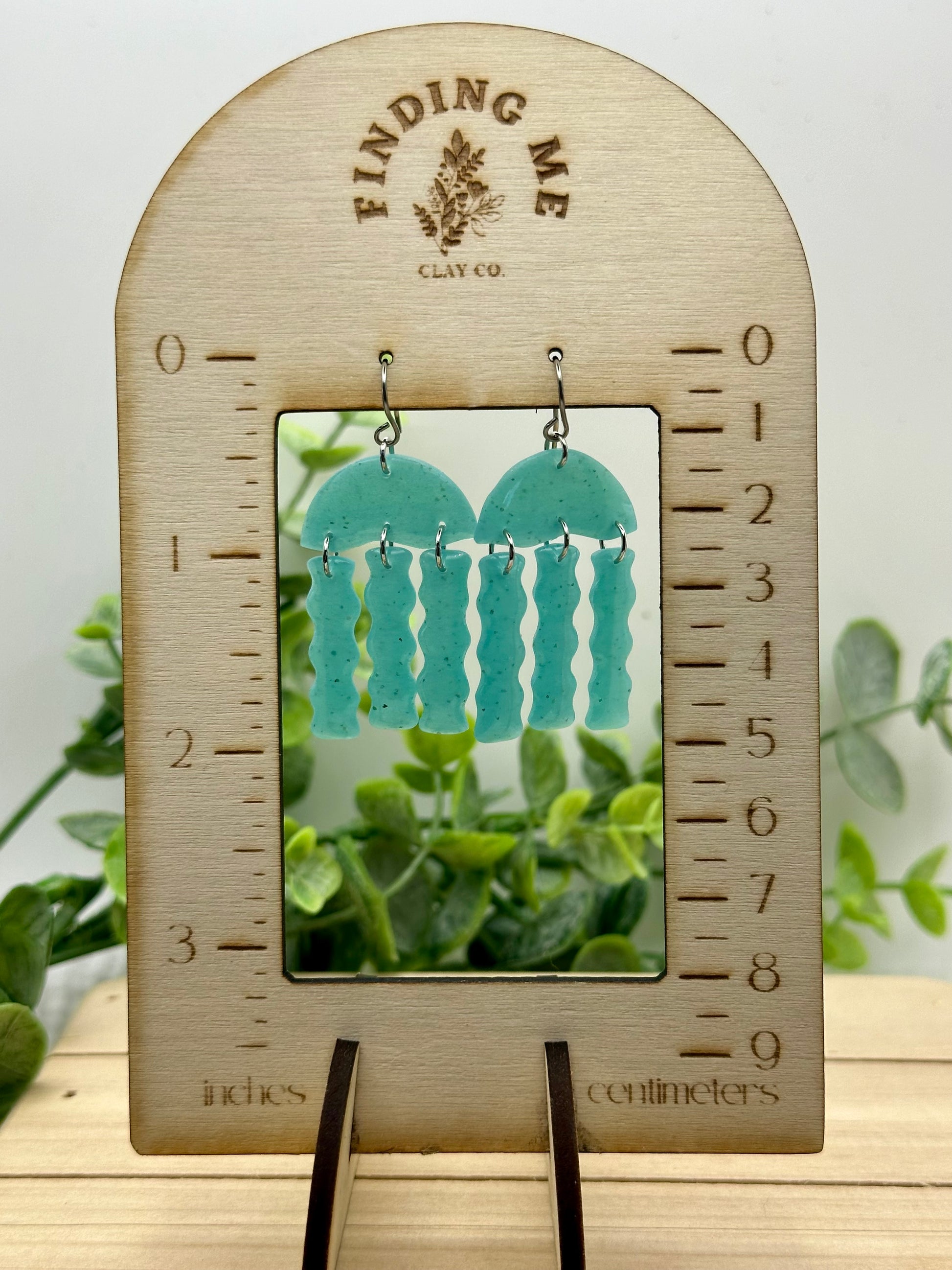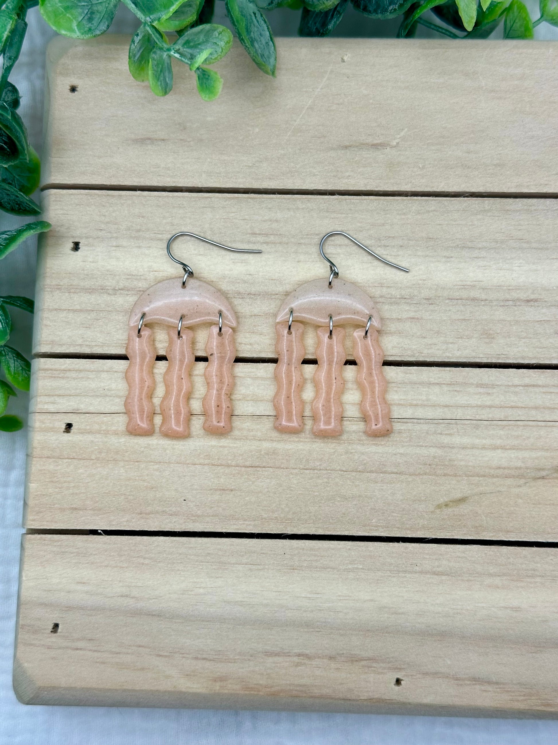 Handmade polymer clay earrings. All on hypoallergenic surgical grade steel findings. Jellyfish dangles in both blue translucent and pink translucent on silver findings