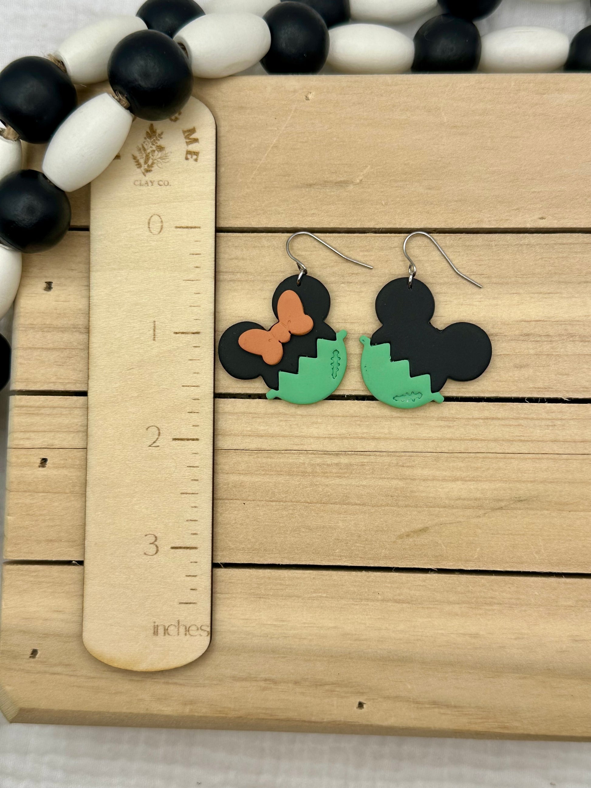 Handmade polymer clay earrings. All on hypoallergenic surgical grade steel findings. Mouse Frankenstein on hooks