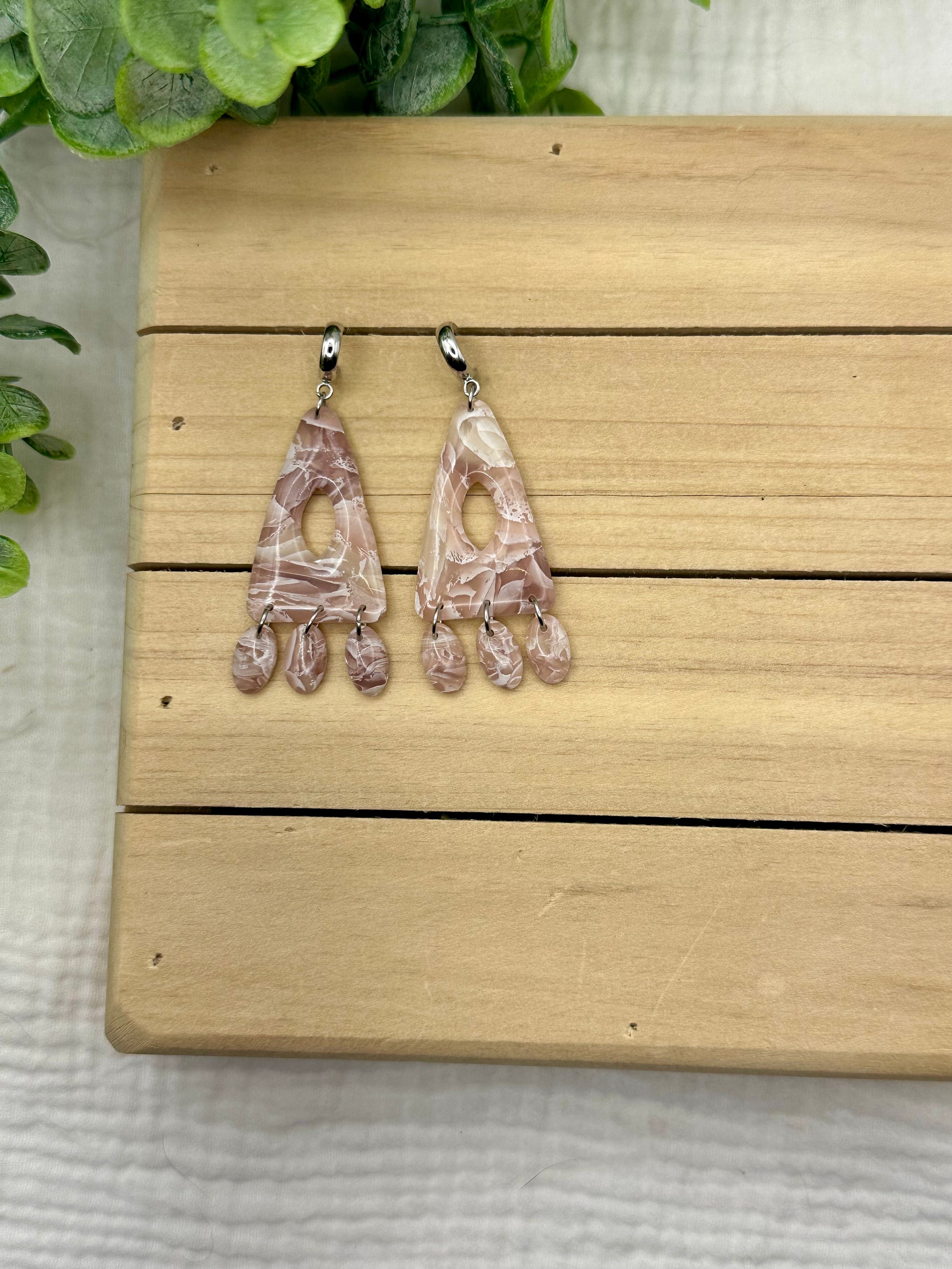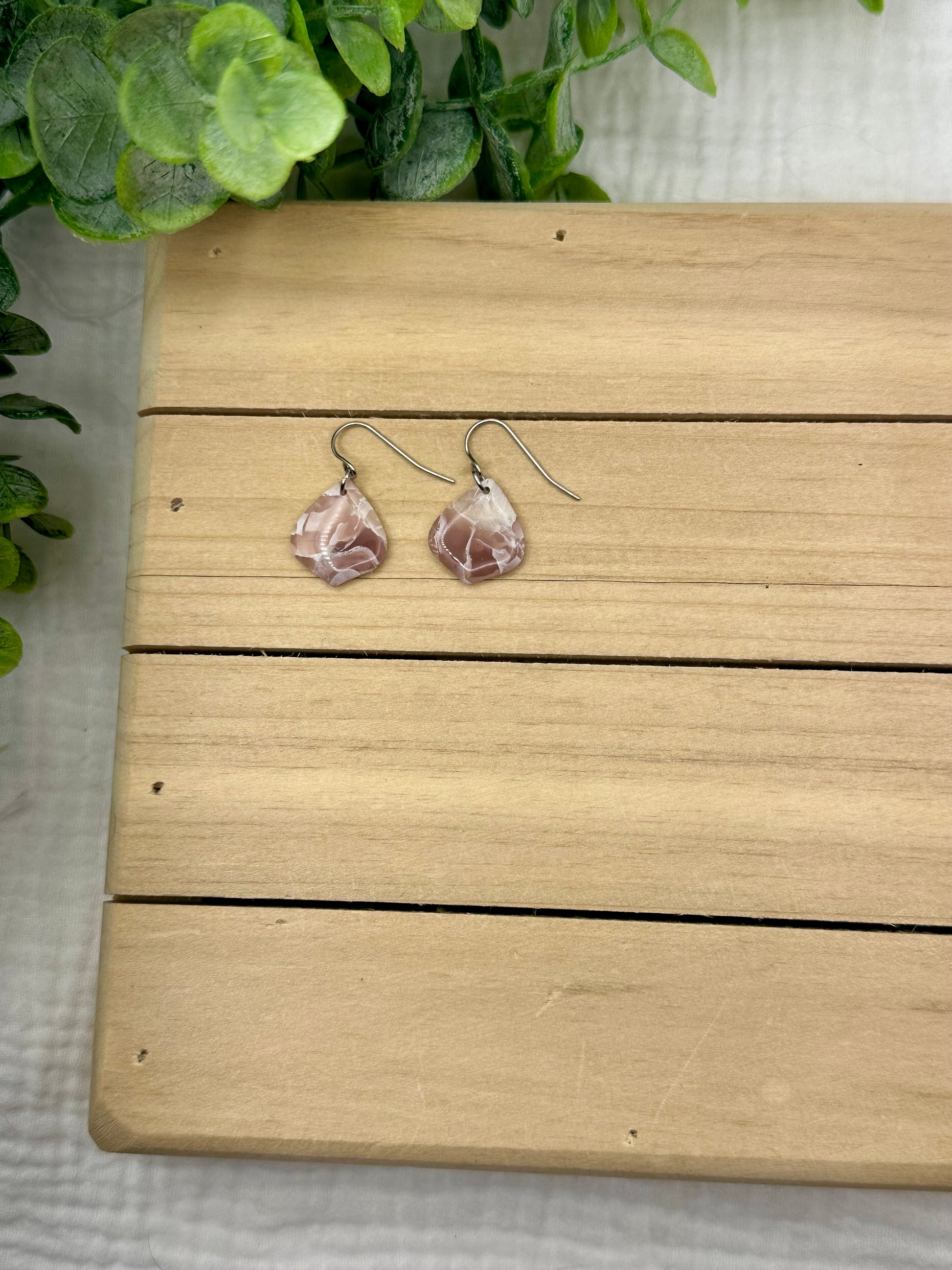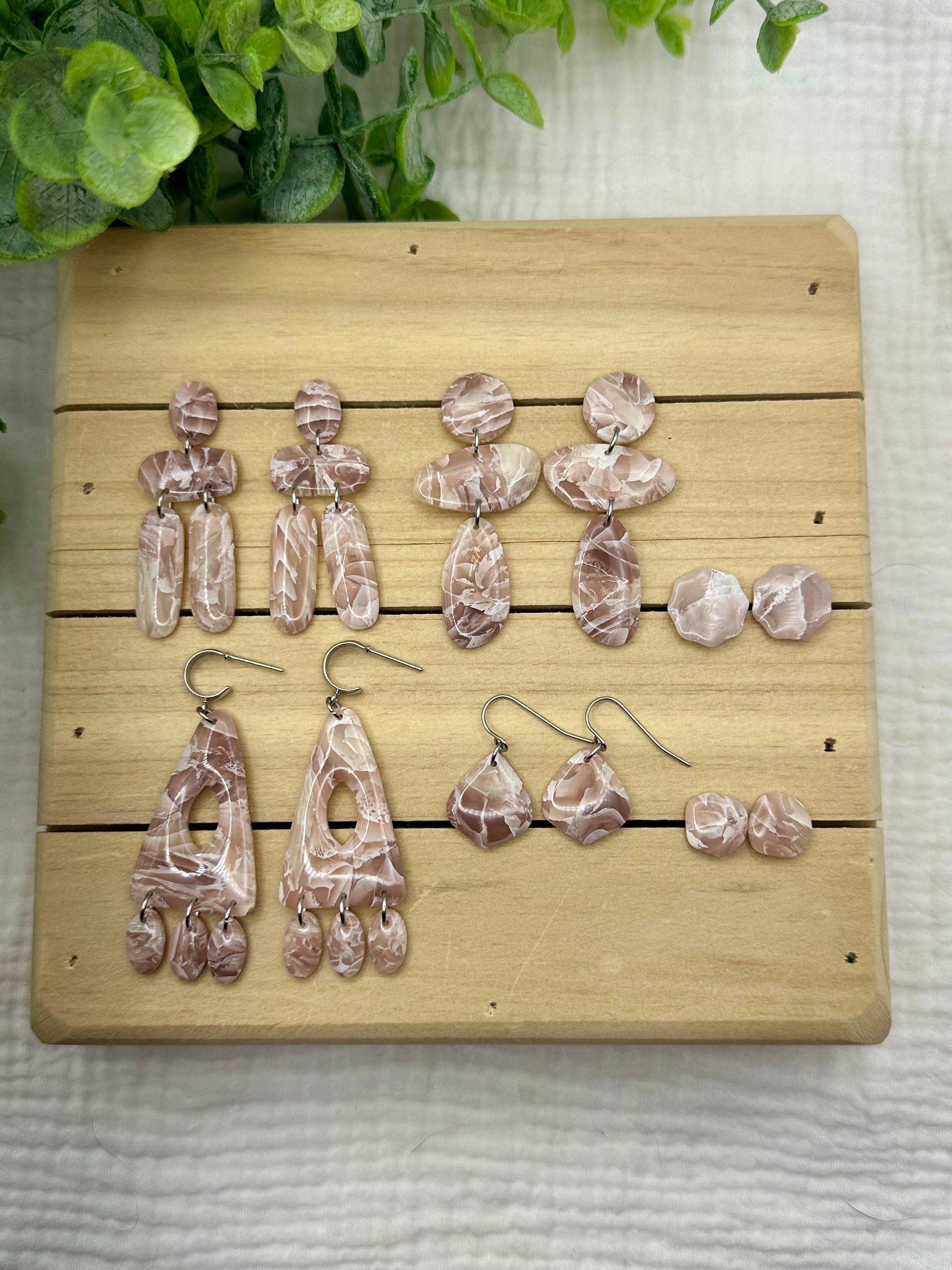 Handmade polymer clay earrings. All on hypoallergenic surgical grade steel findings. Muted Purple marbled on silver findings