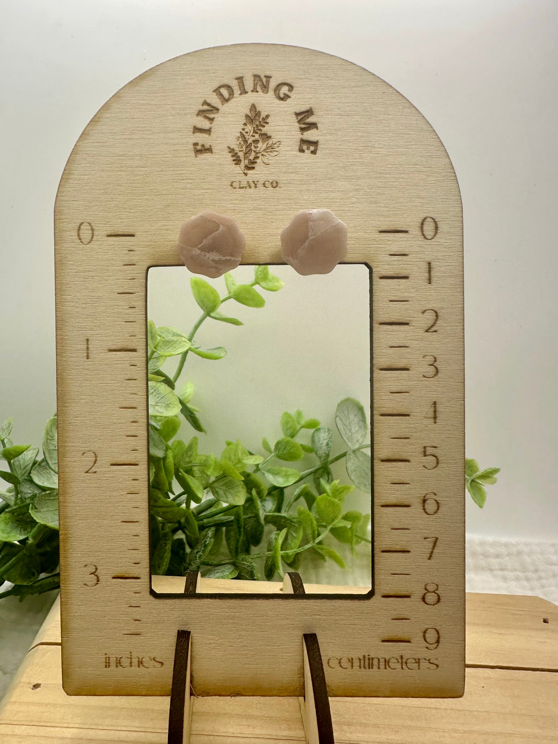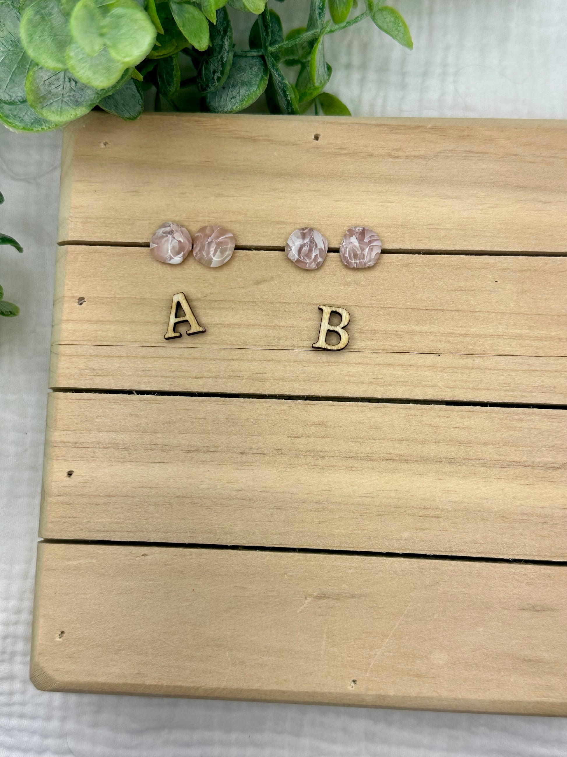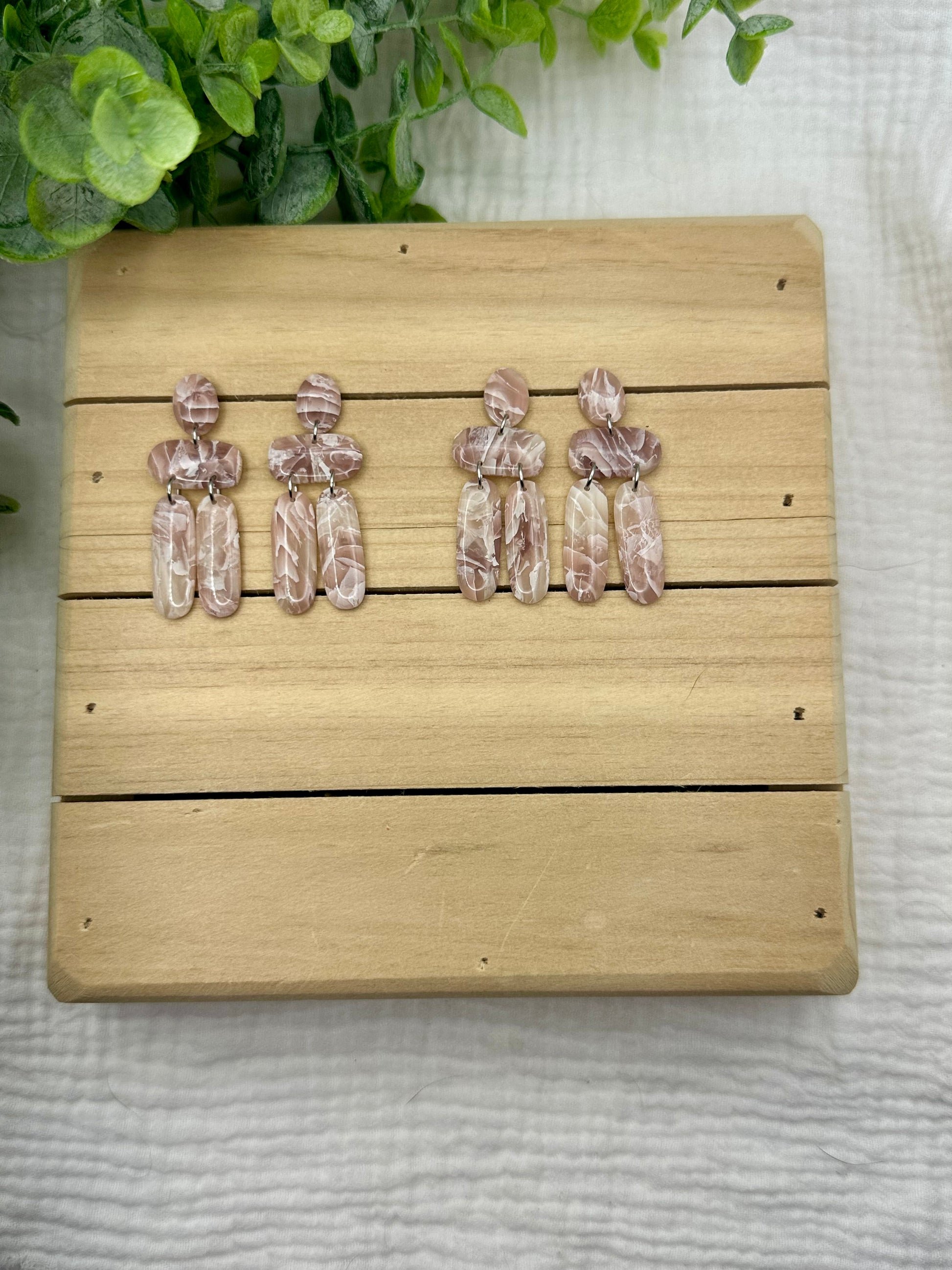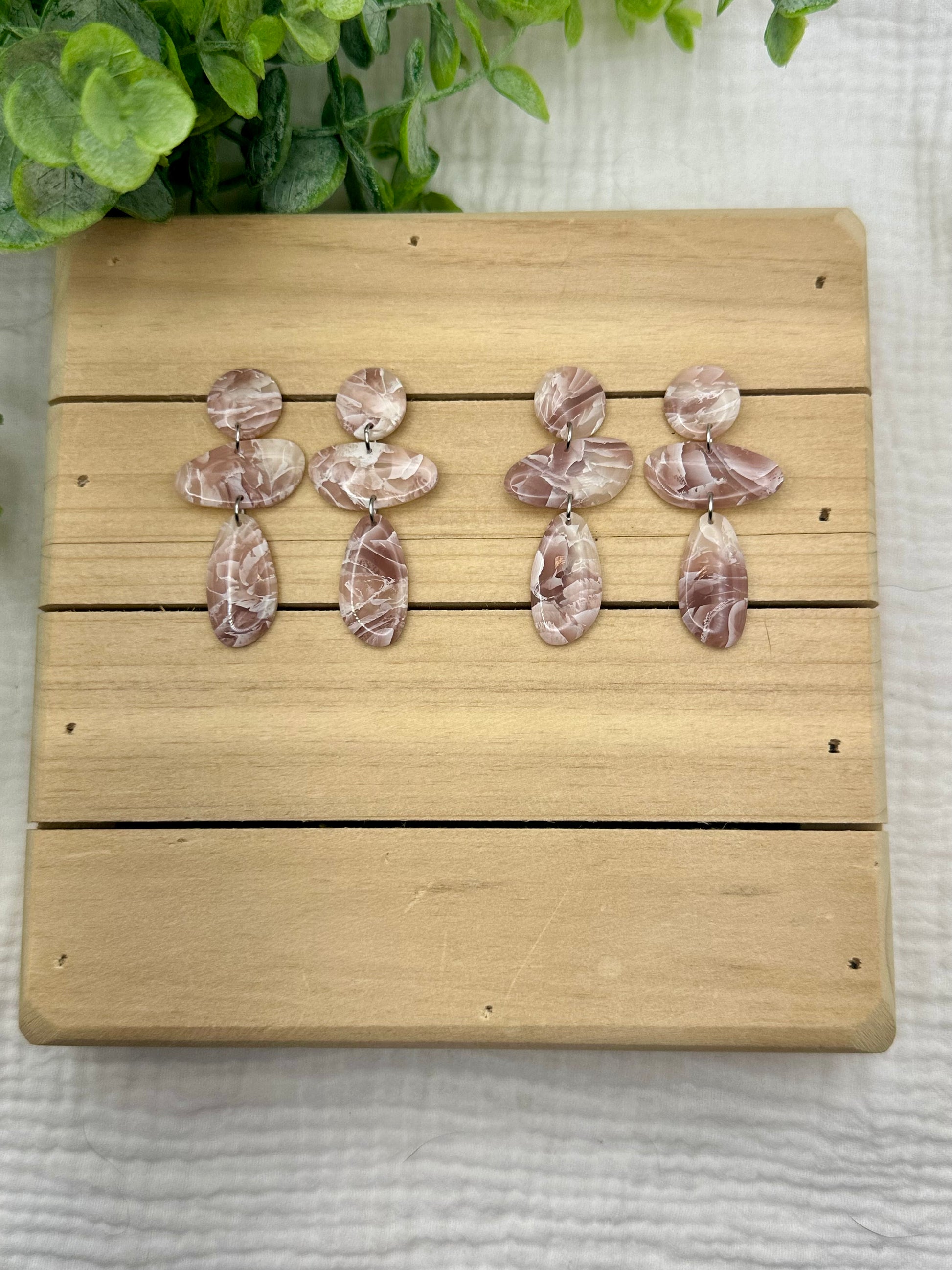 Handmade polymer clay earrings. All on hypoallergenic surgical grade steel findings. Muted Purple marbled on silver findings