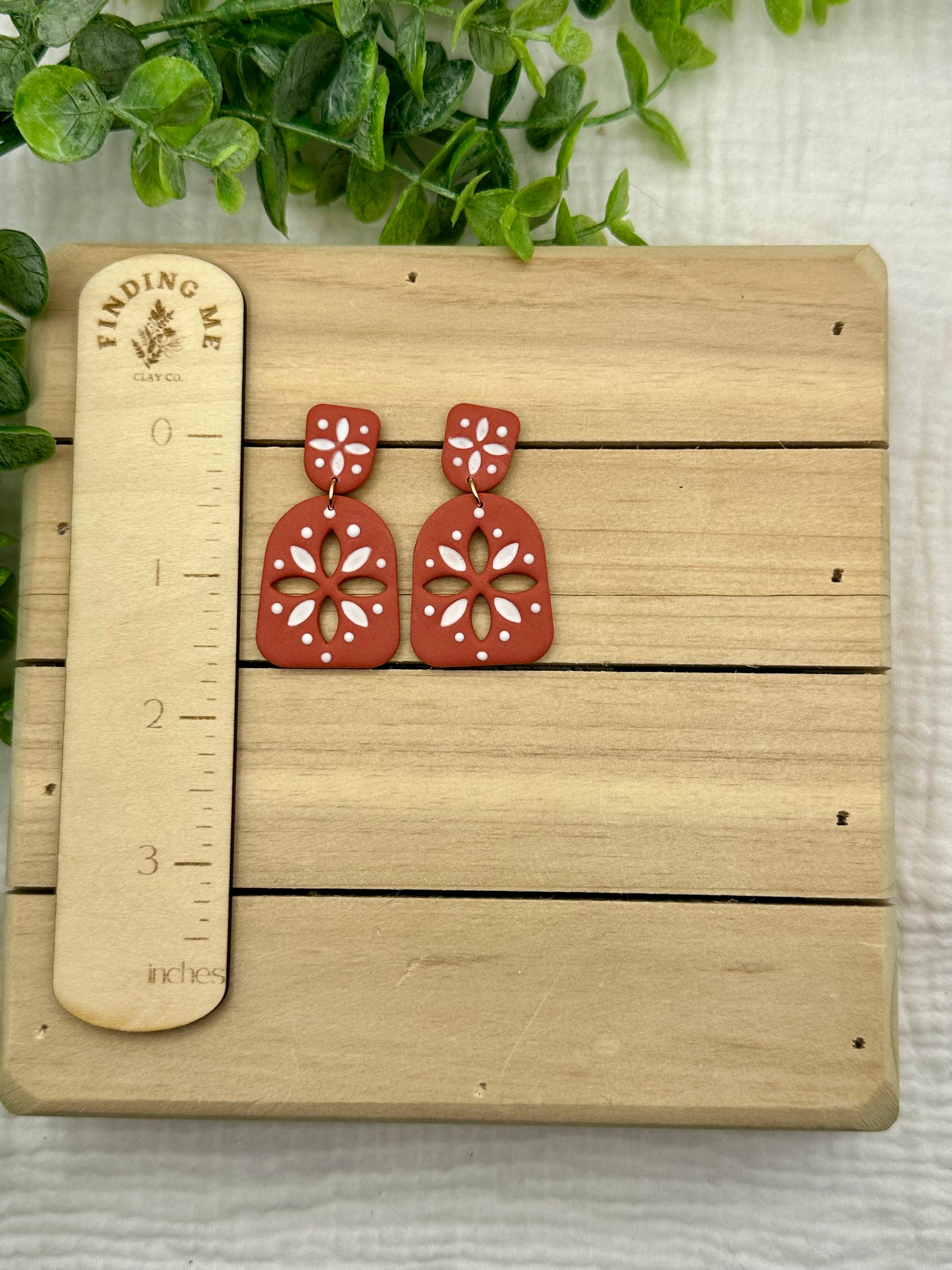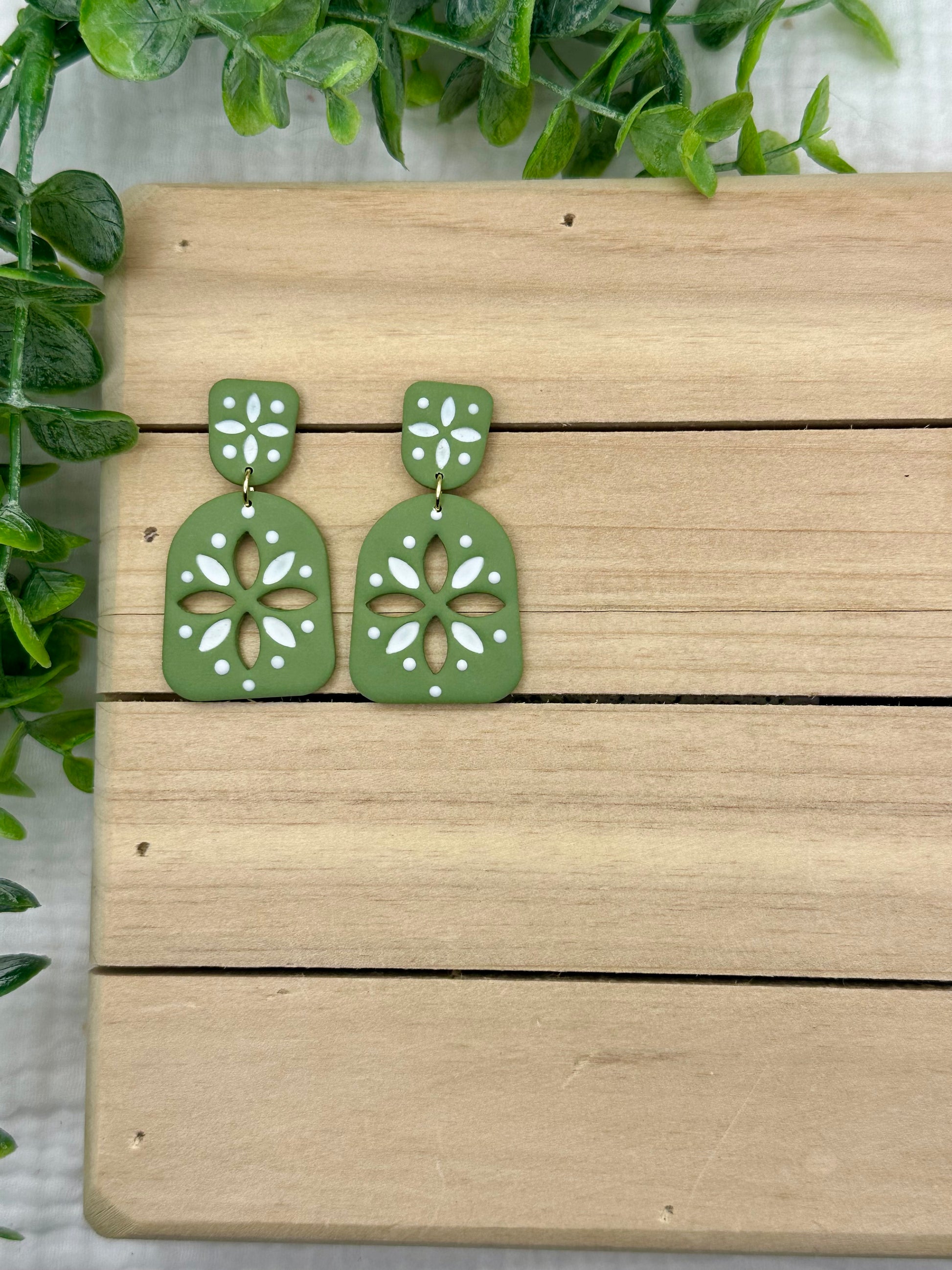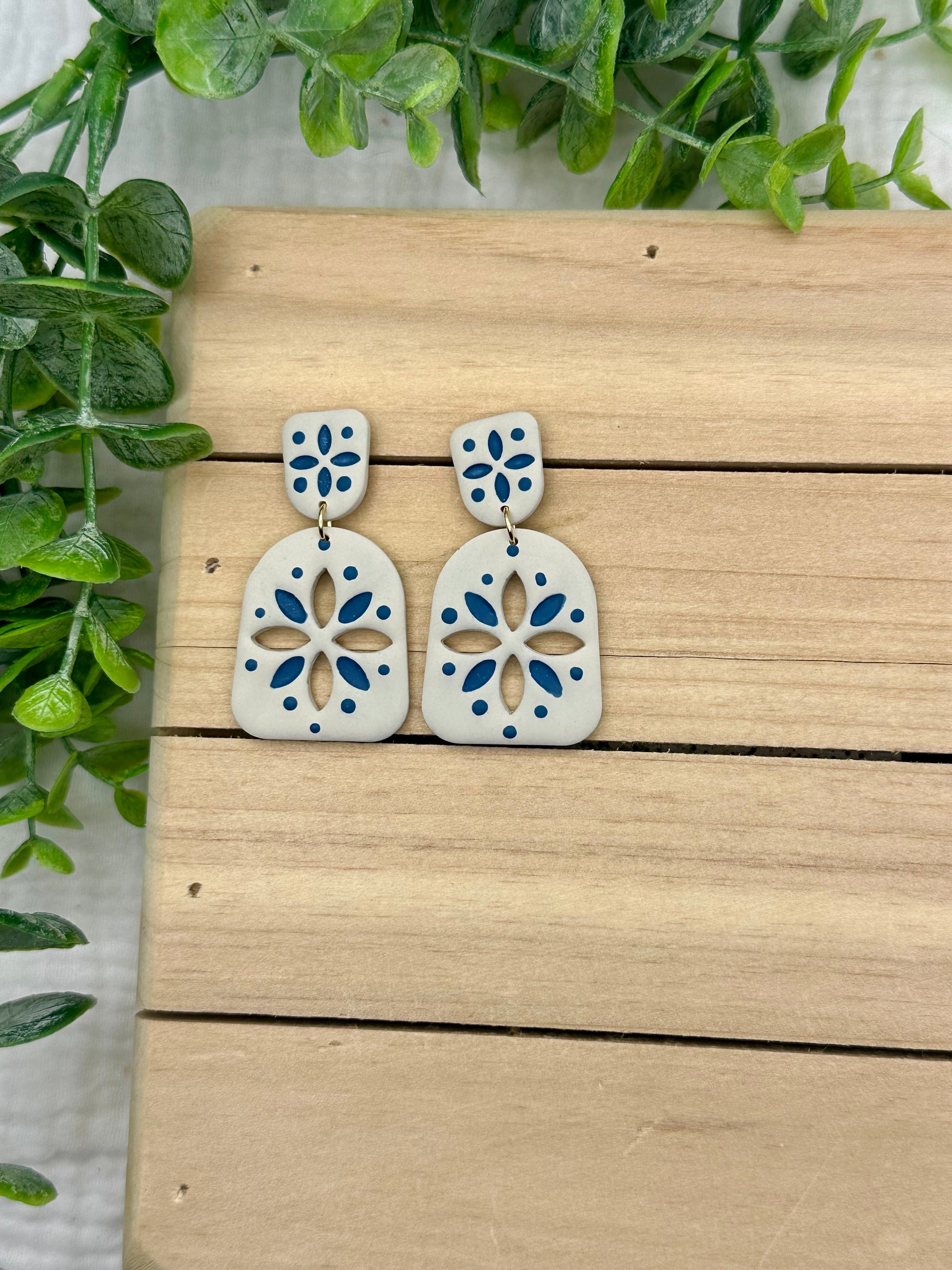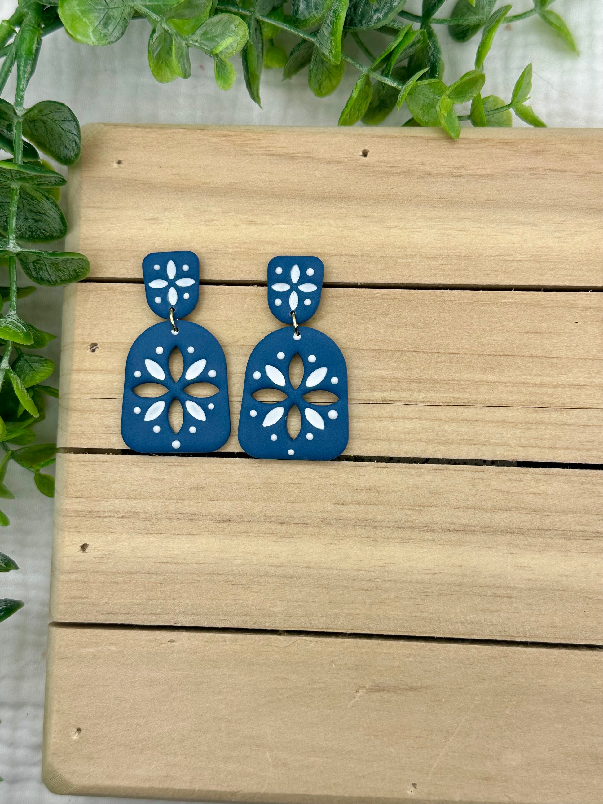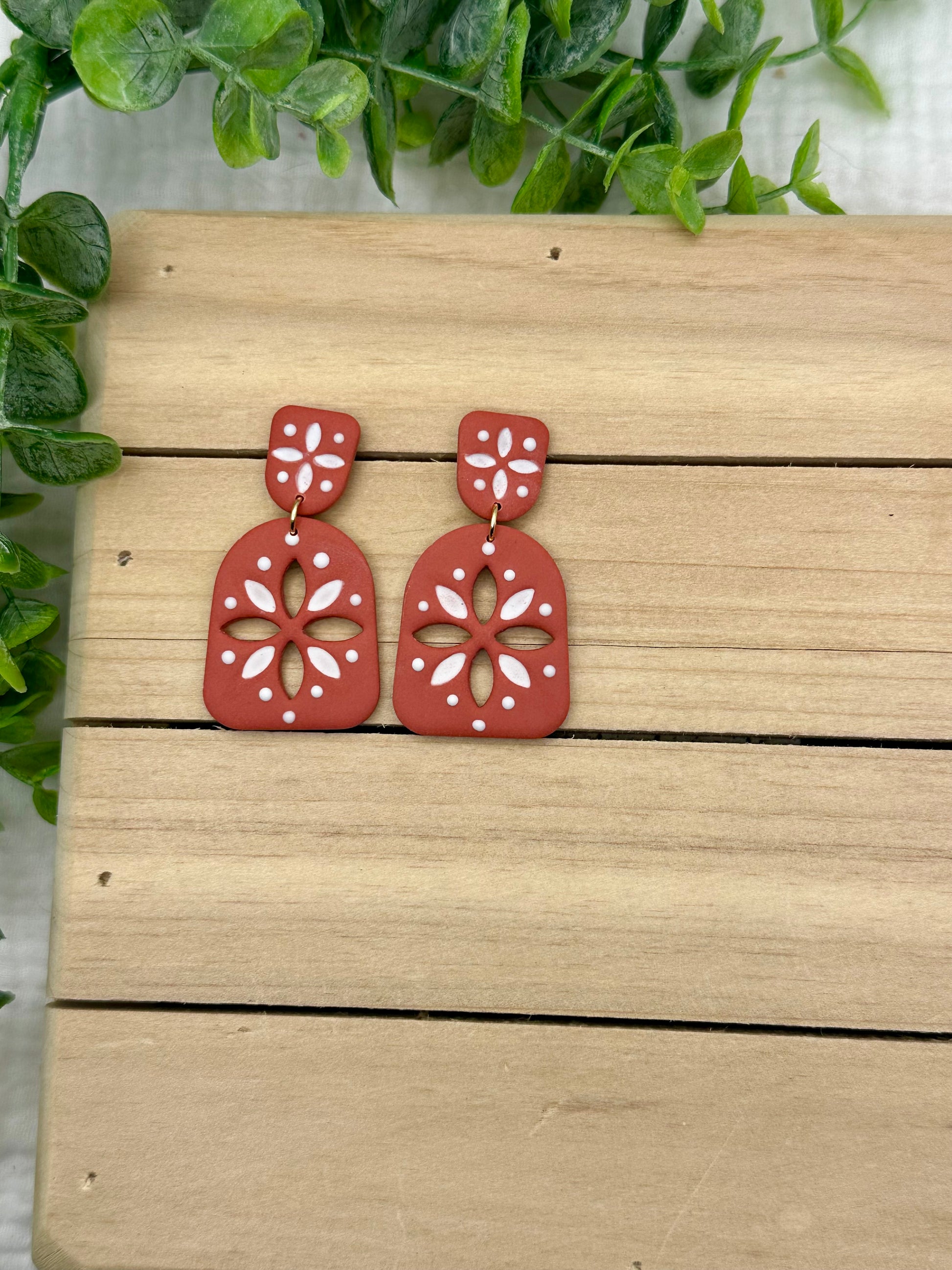 Handmade polymer clay earrings. All on hypoallergenic surgical grade steel findings. Cut out Dangle that is Hand Paint