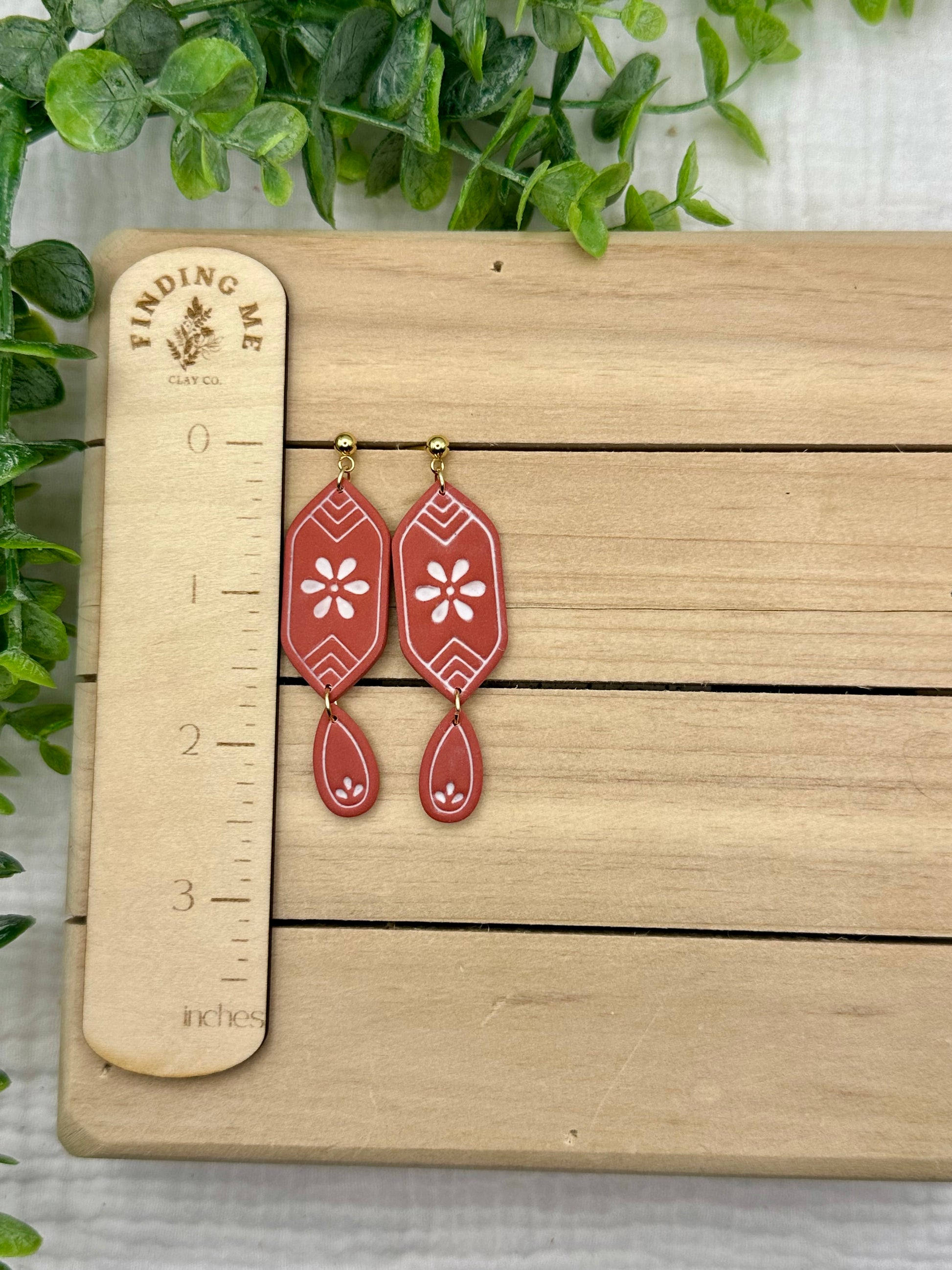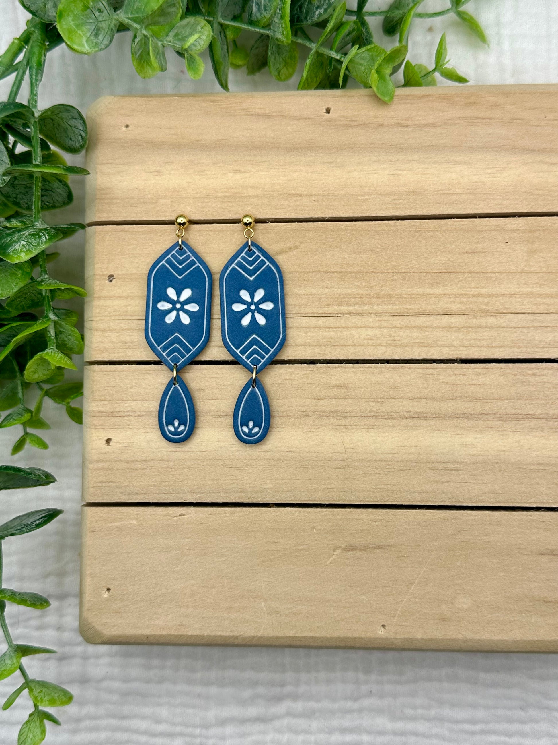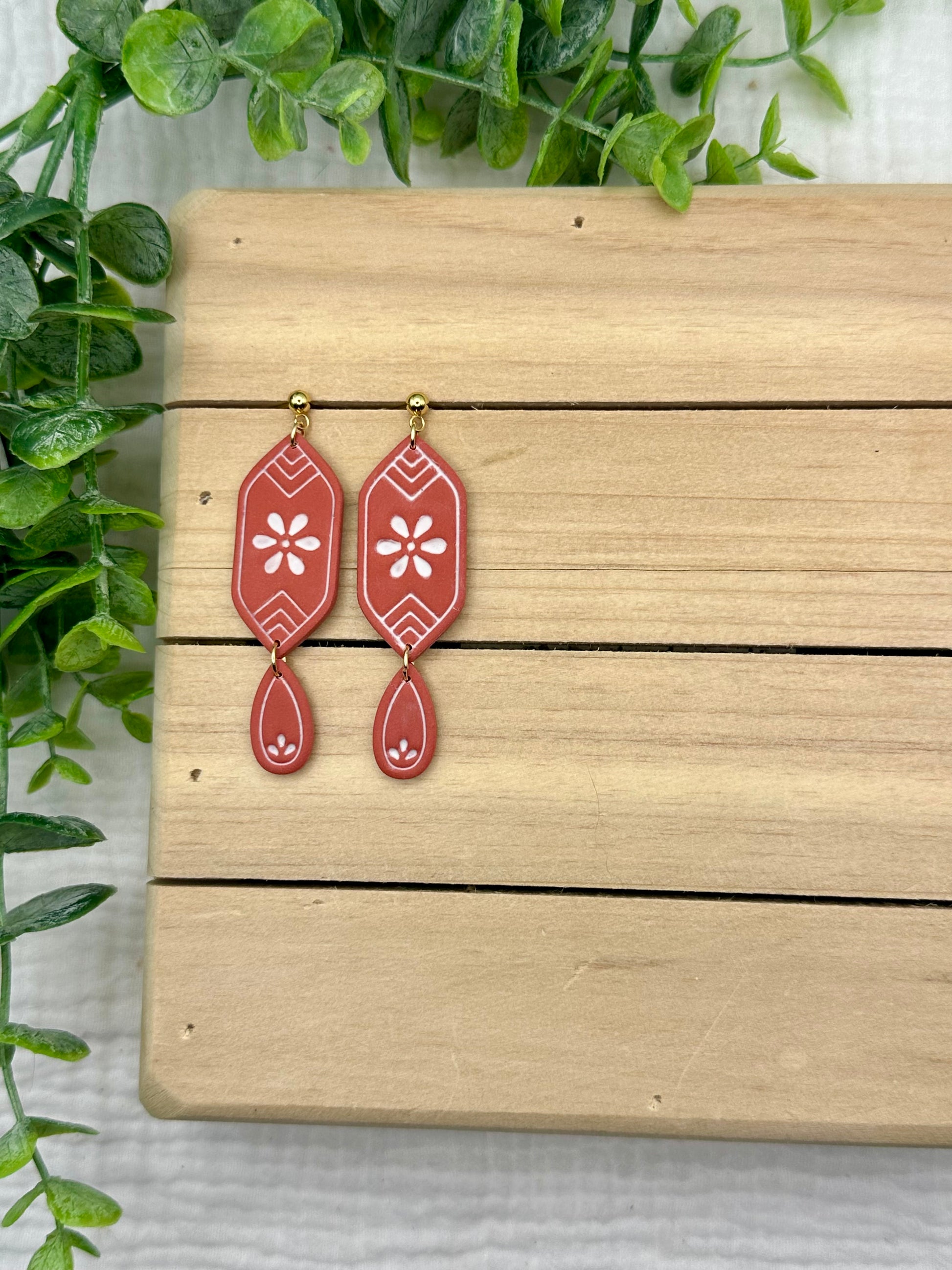 Handmade polymer clay earrings. All on hypoallergenic surgical grade steel findings. Painted Daisy dangles