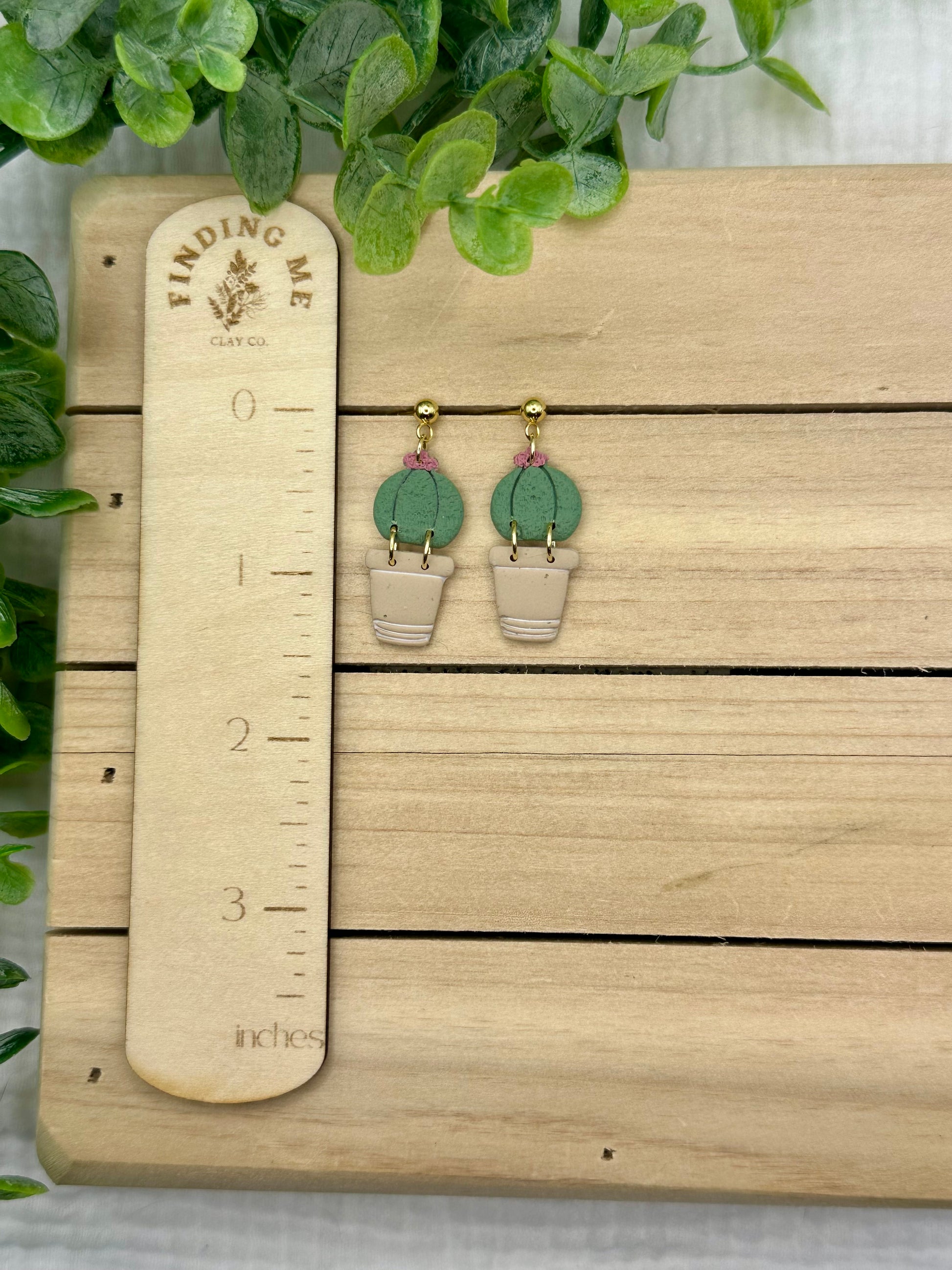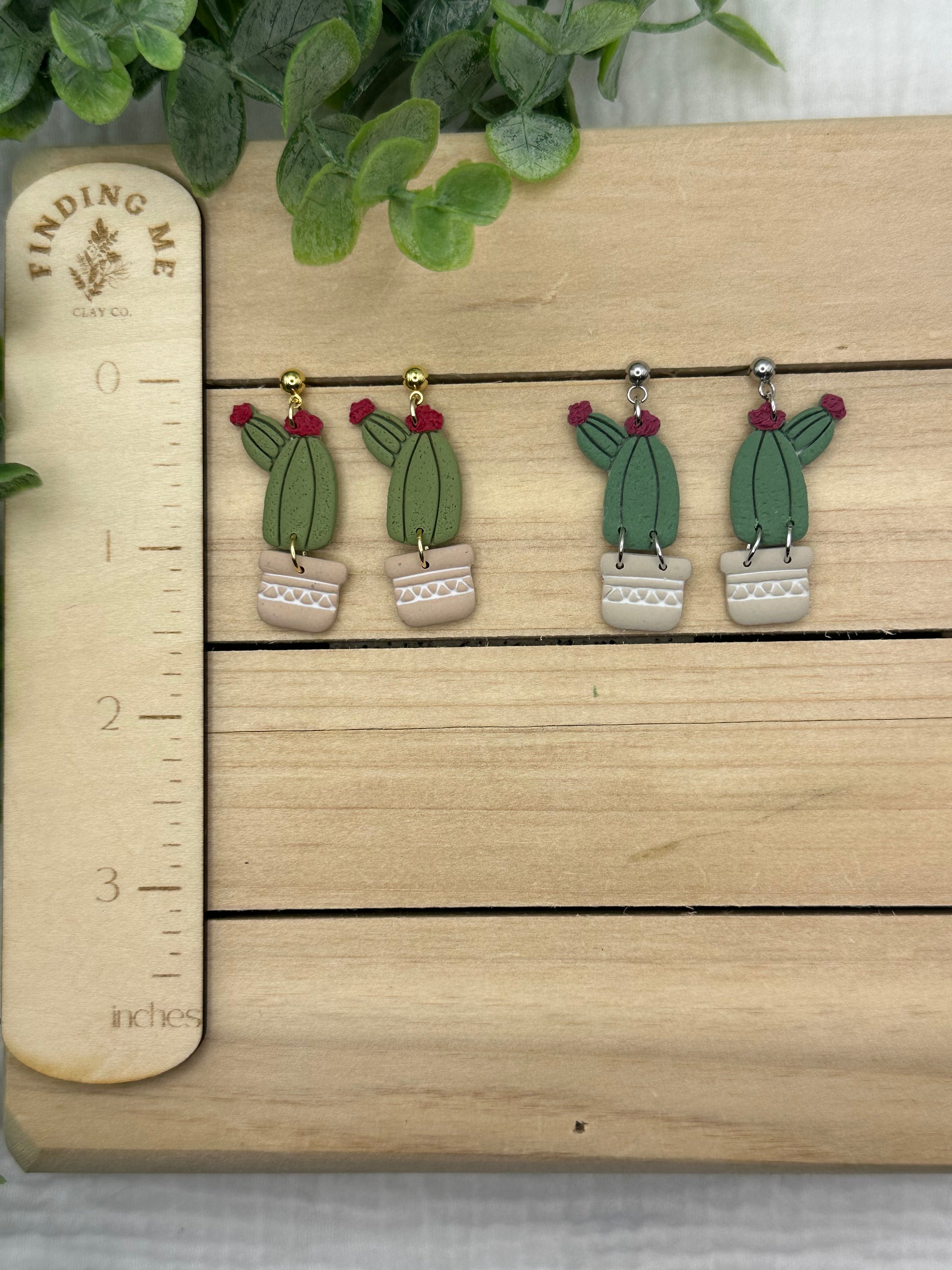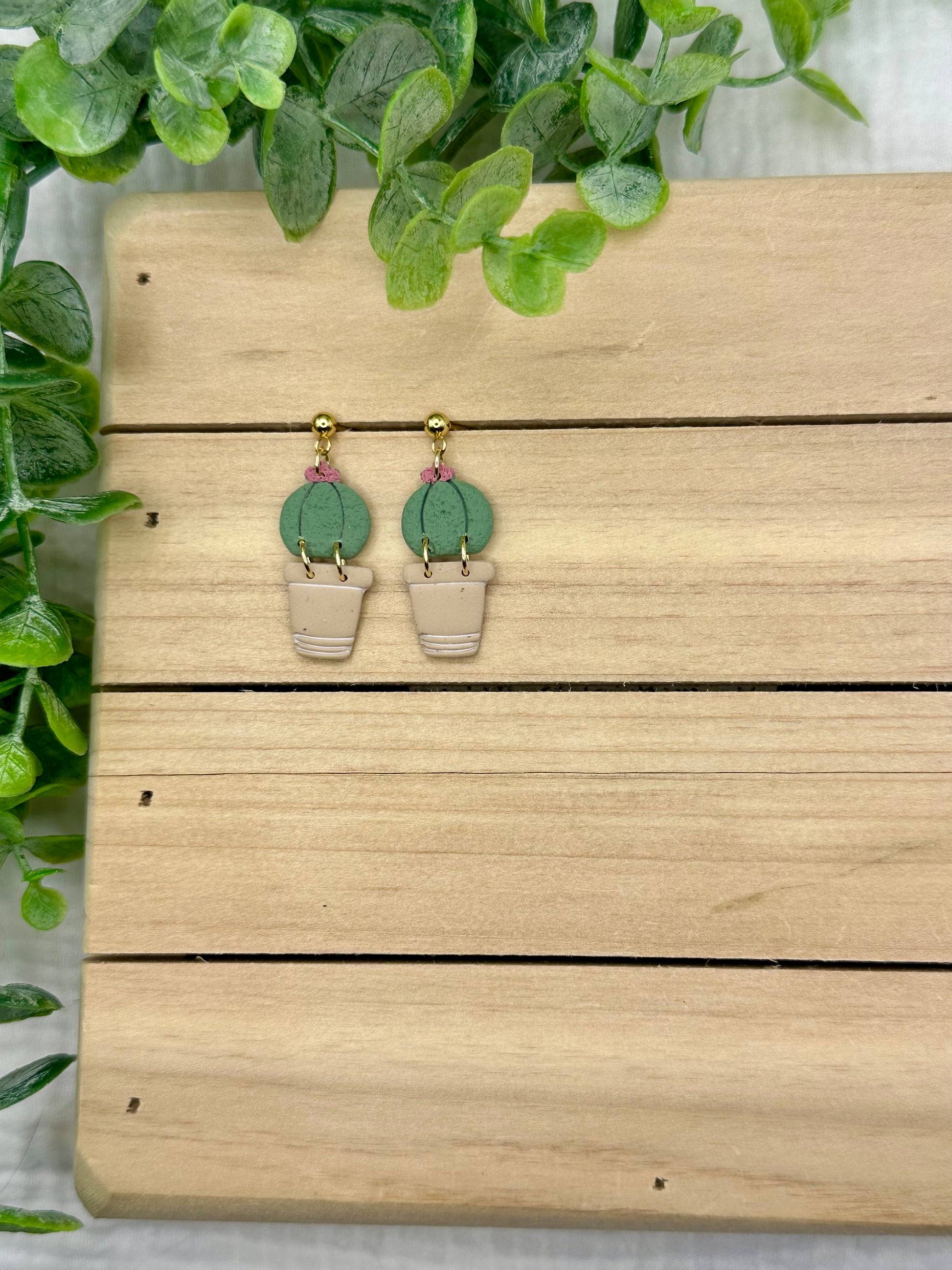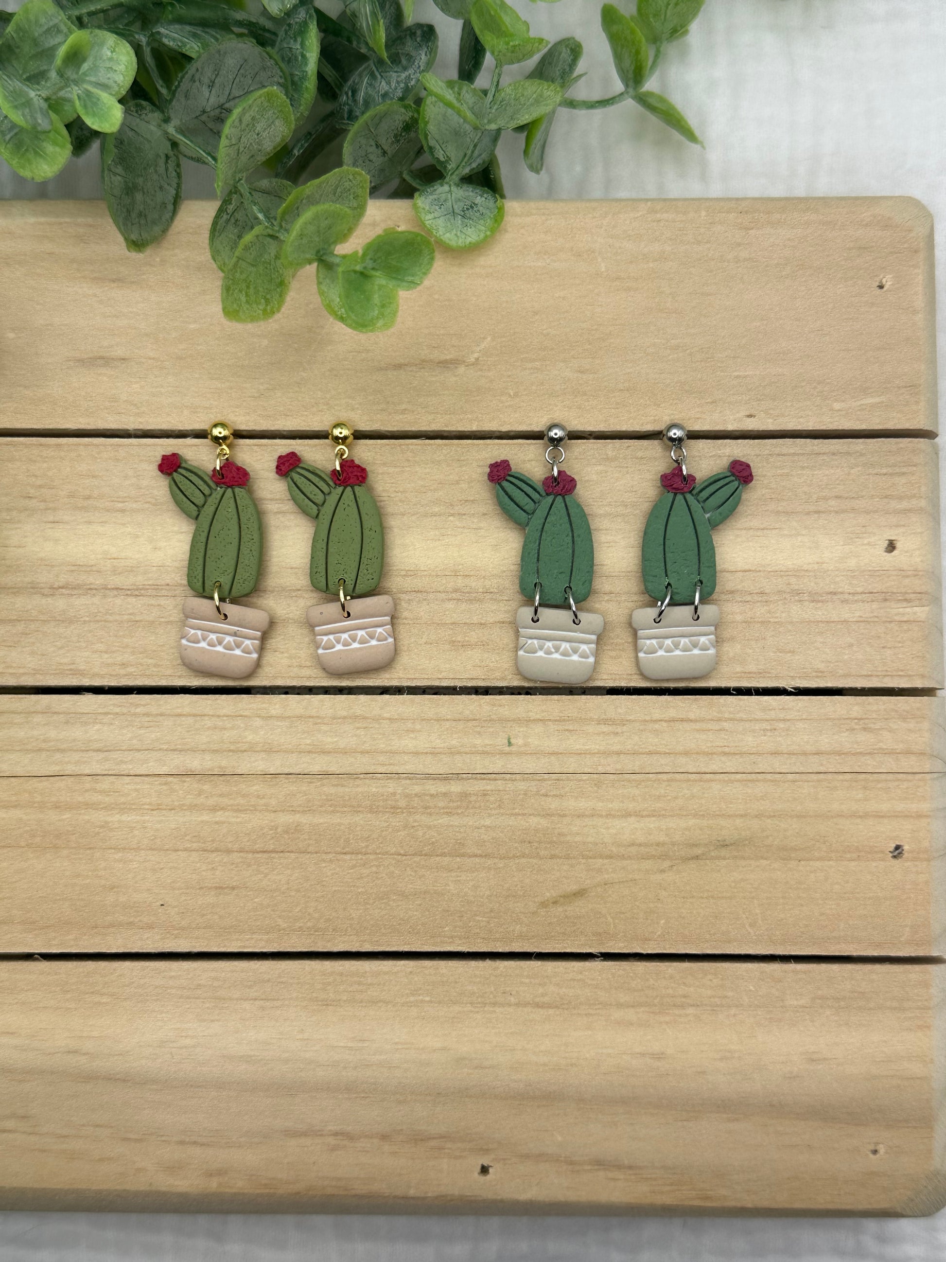 Handmade polymer clay earrings. All on hypoallergenic surgical grade steel findings. Choose between floral cactus of spiked succulent on Silver and gold coated ballposts
