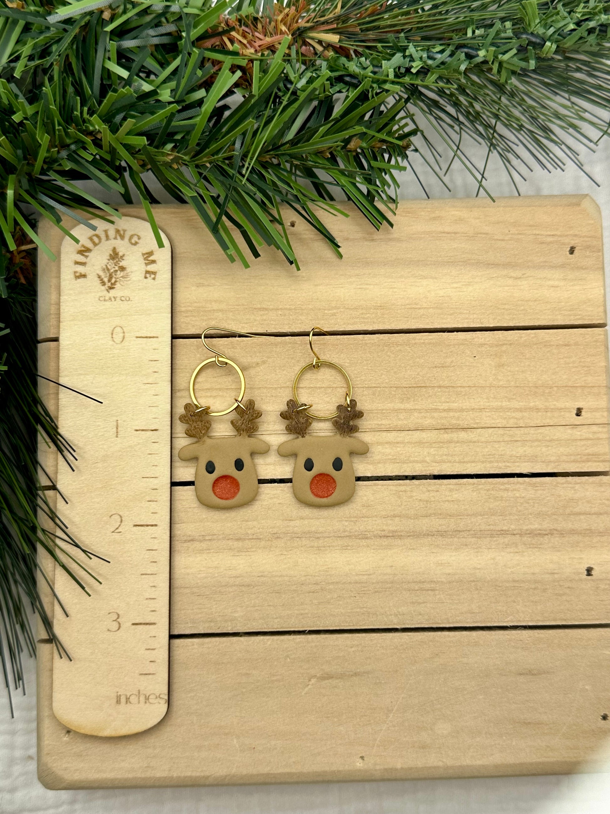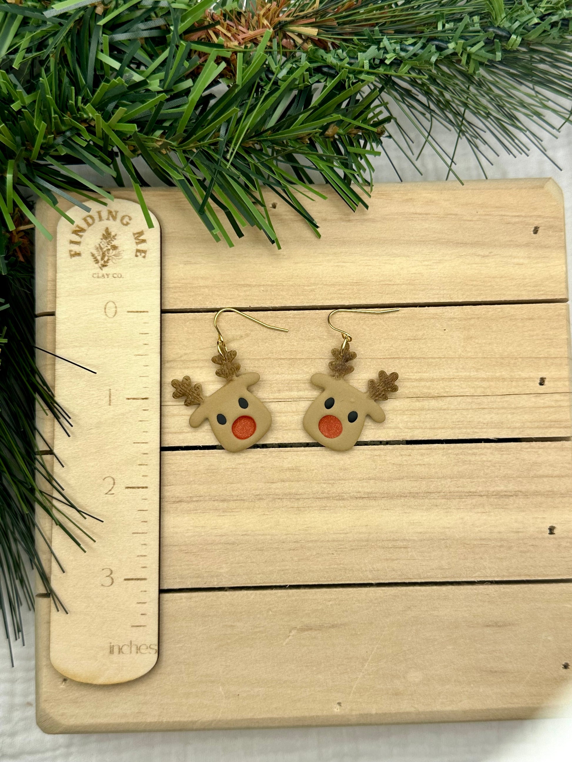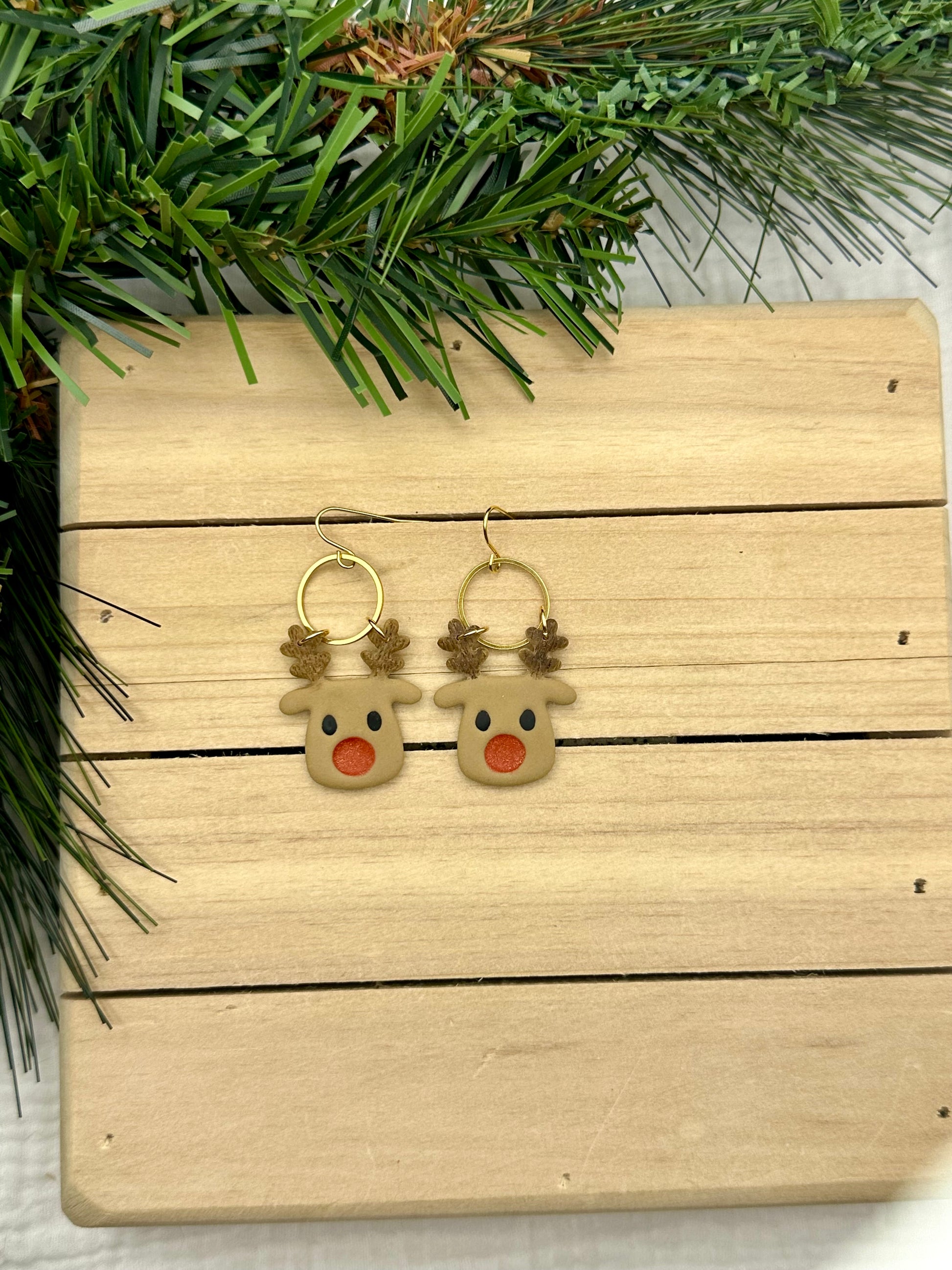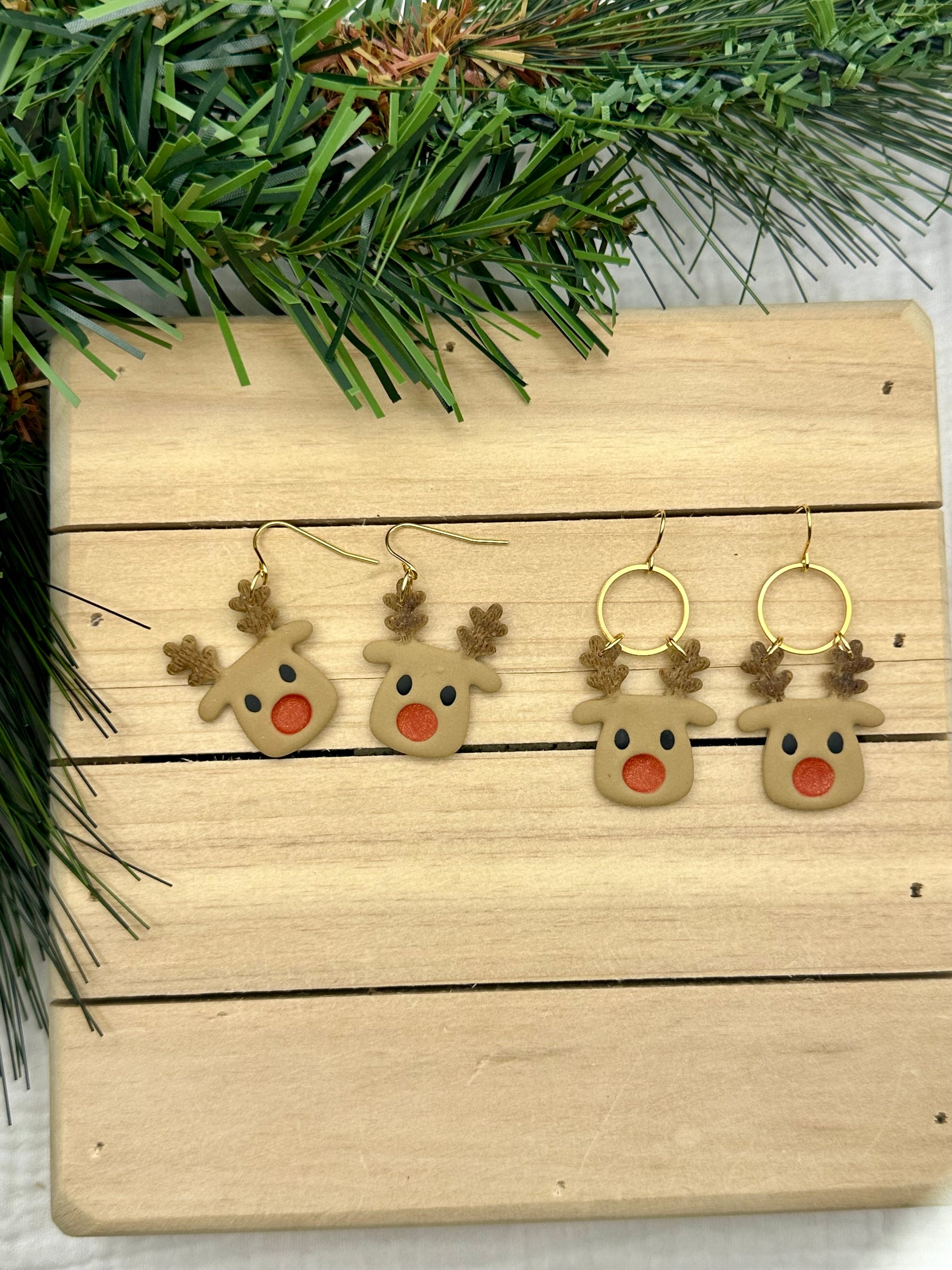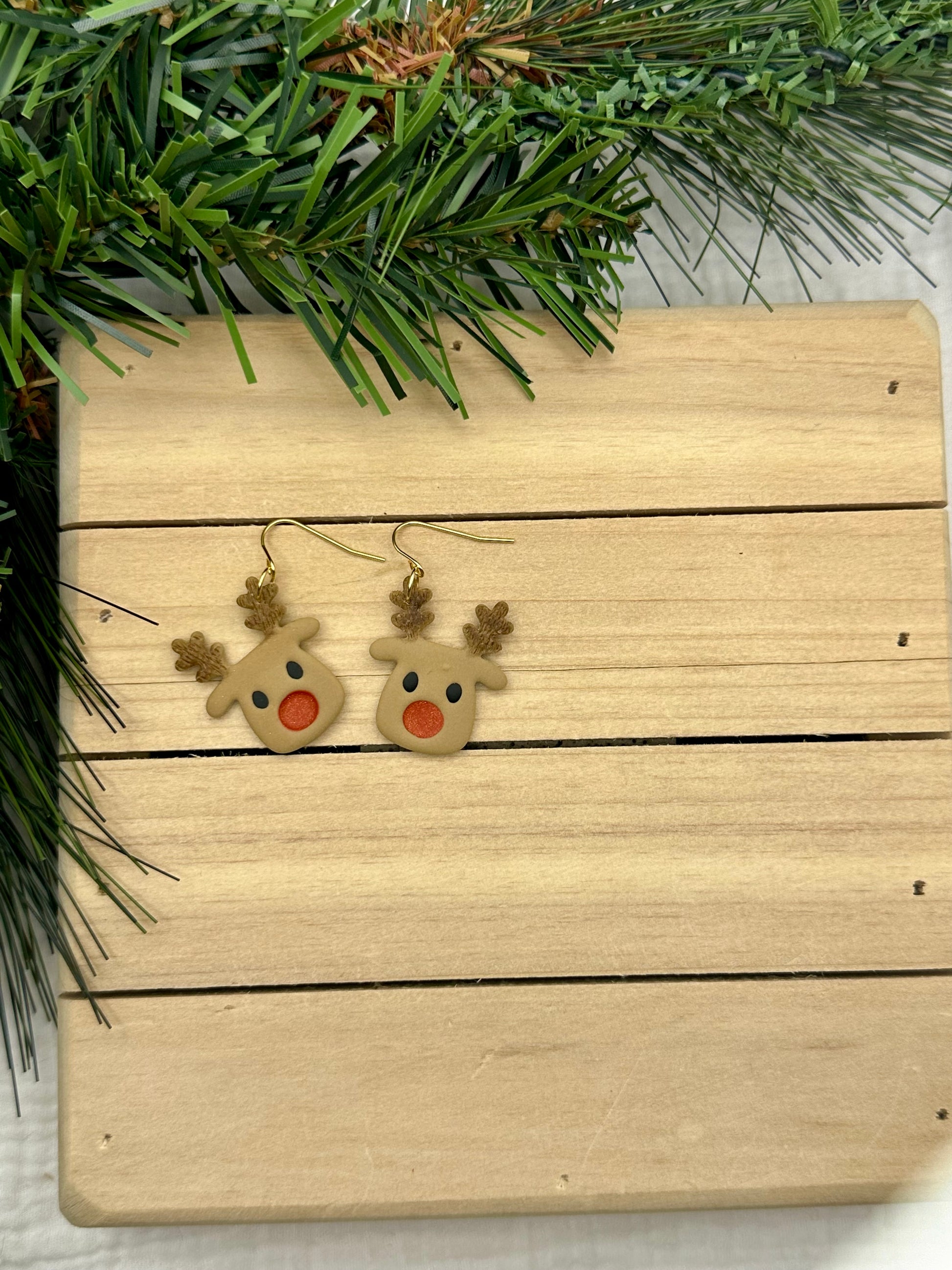 Handmade polymer clay earrings. All on hypoallergenic findings. Reindeer on hook or charm and hook