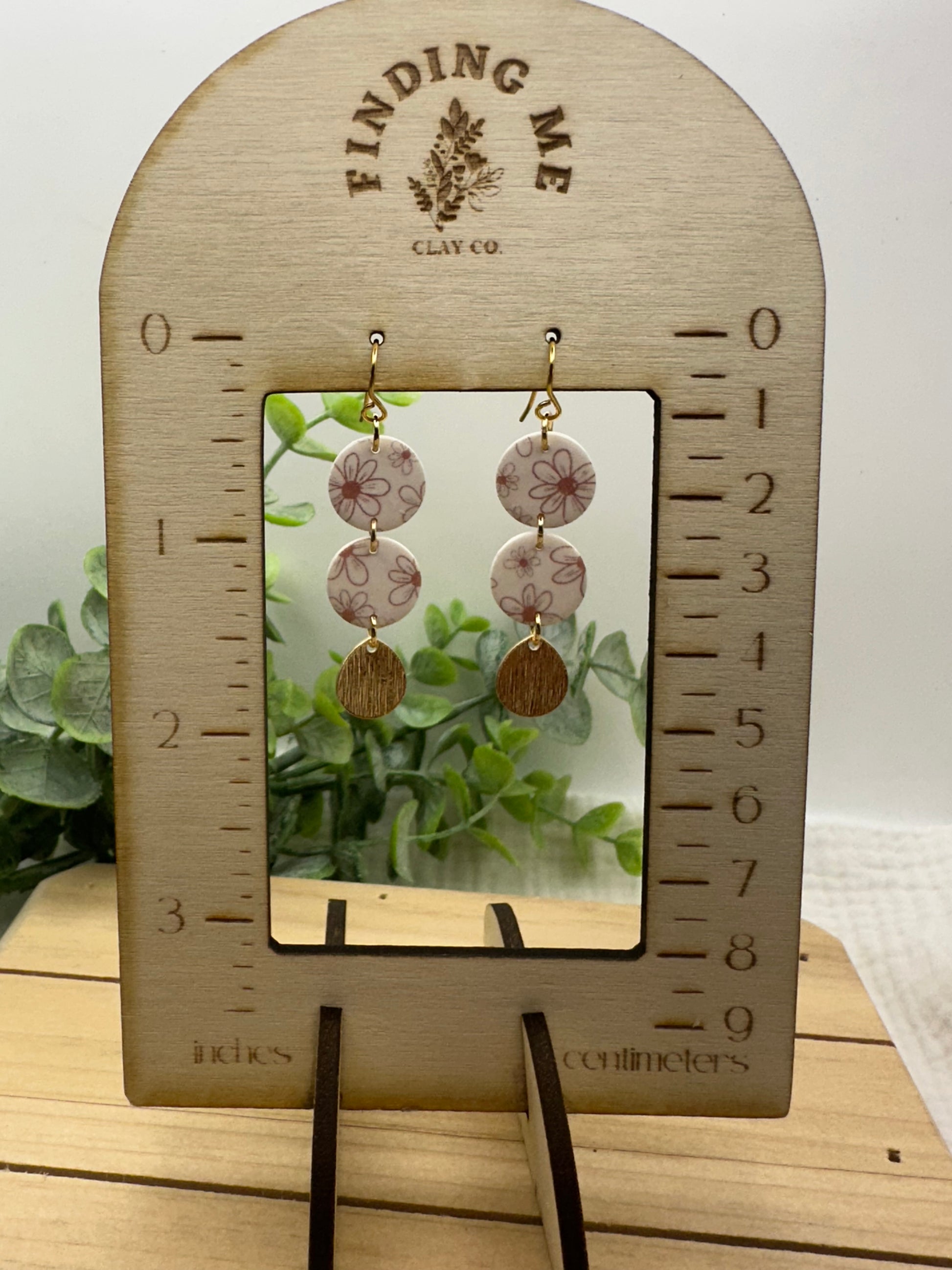 Handmade polymer clay earrings. All on hypoallergenic surgical grade steel findings. Rustic Daisy Print with gold coated surgical steel and wooden findings