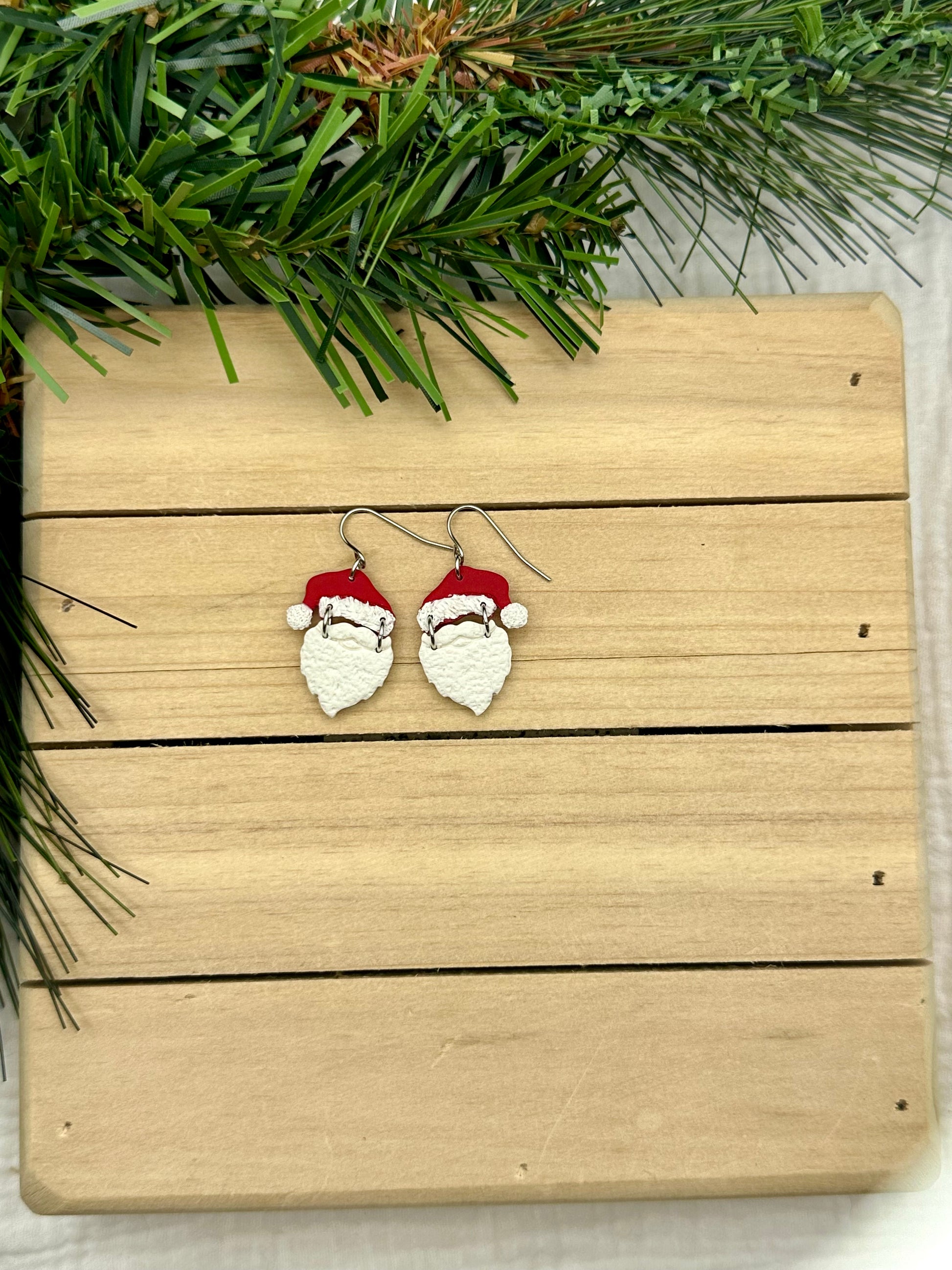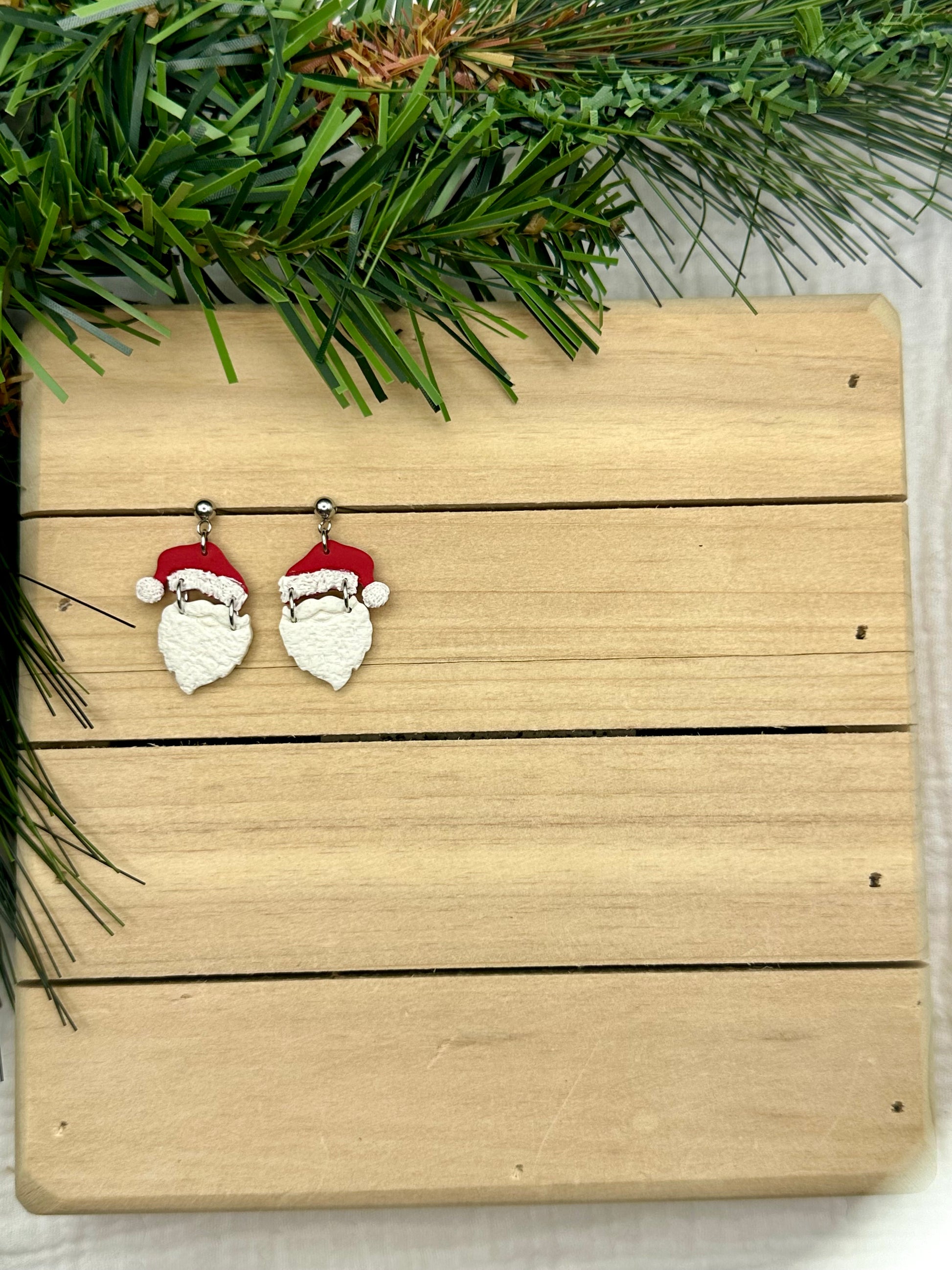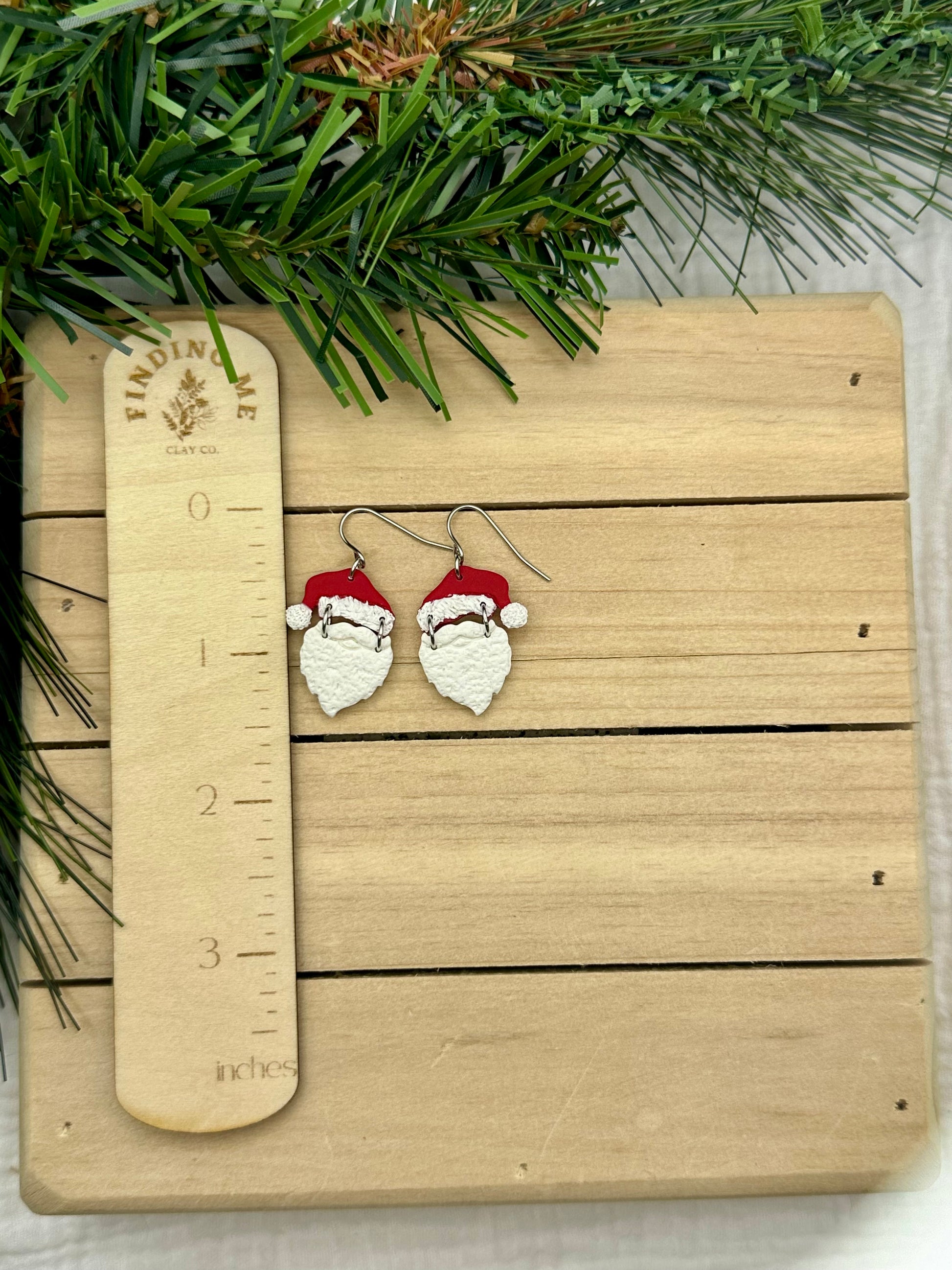 Handmade polymer clay earrings. All on hypoallergenic surgical grade steel findings. Santa beard and hat on silver ball post or hook