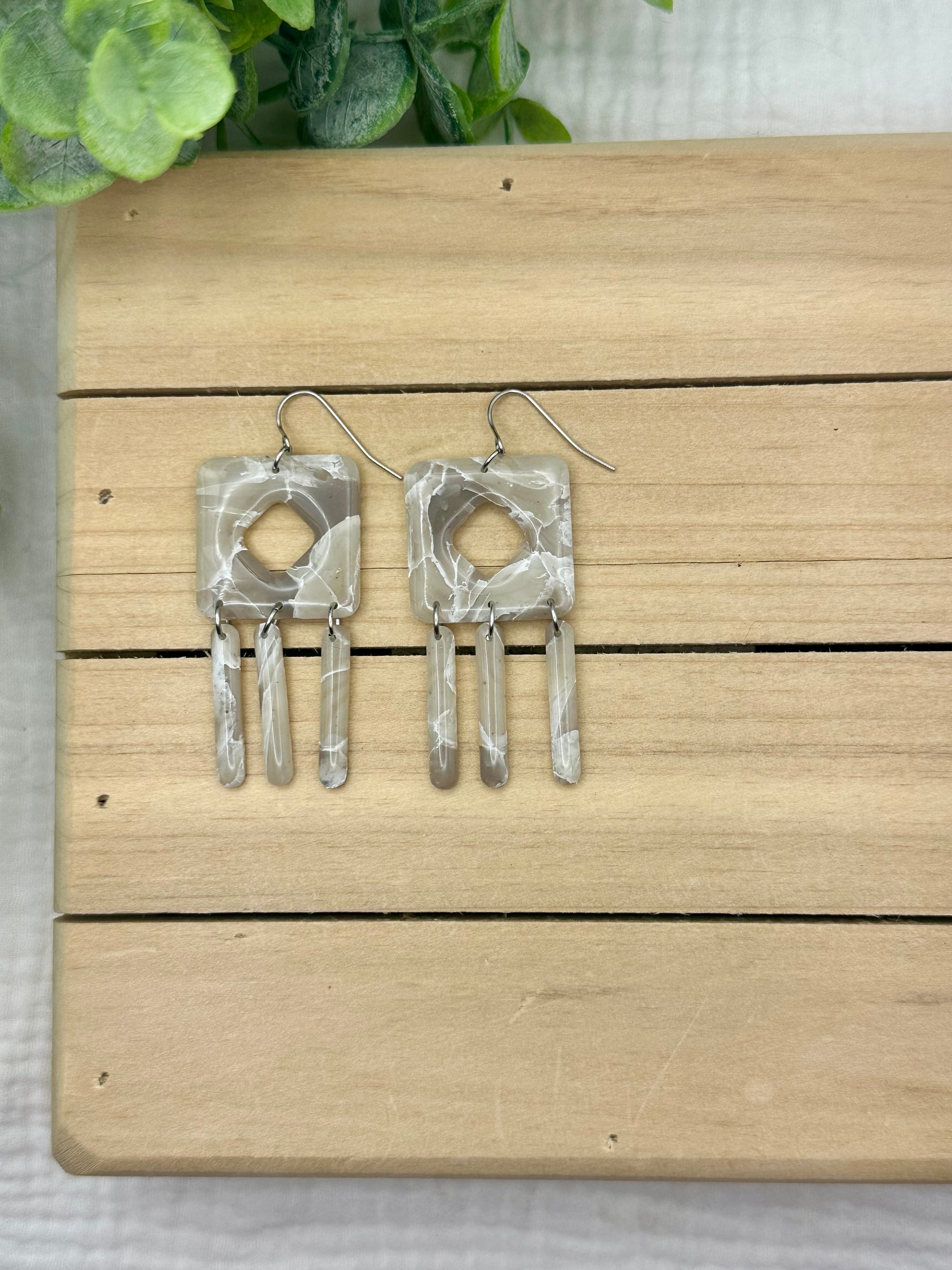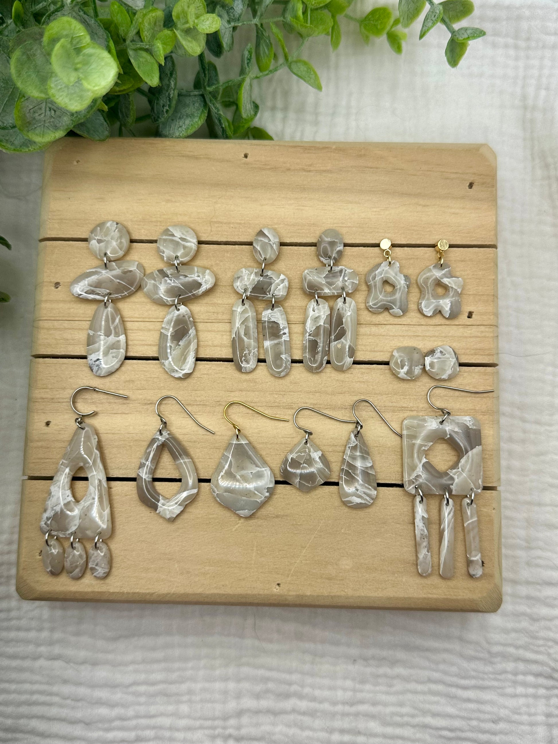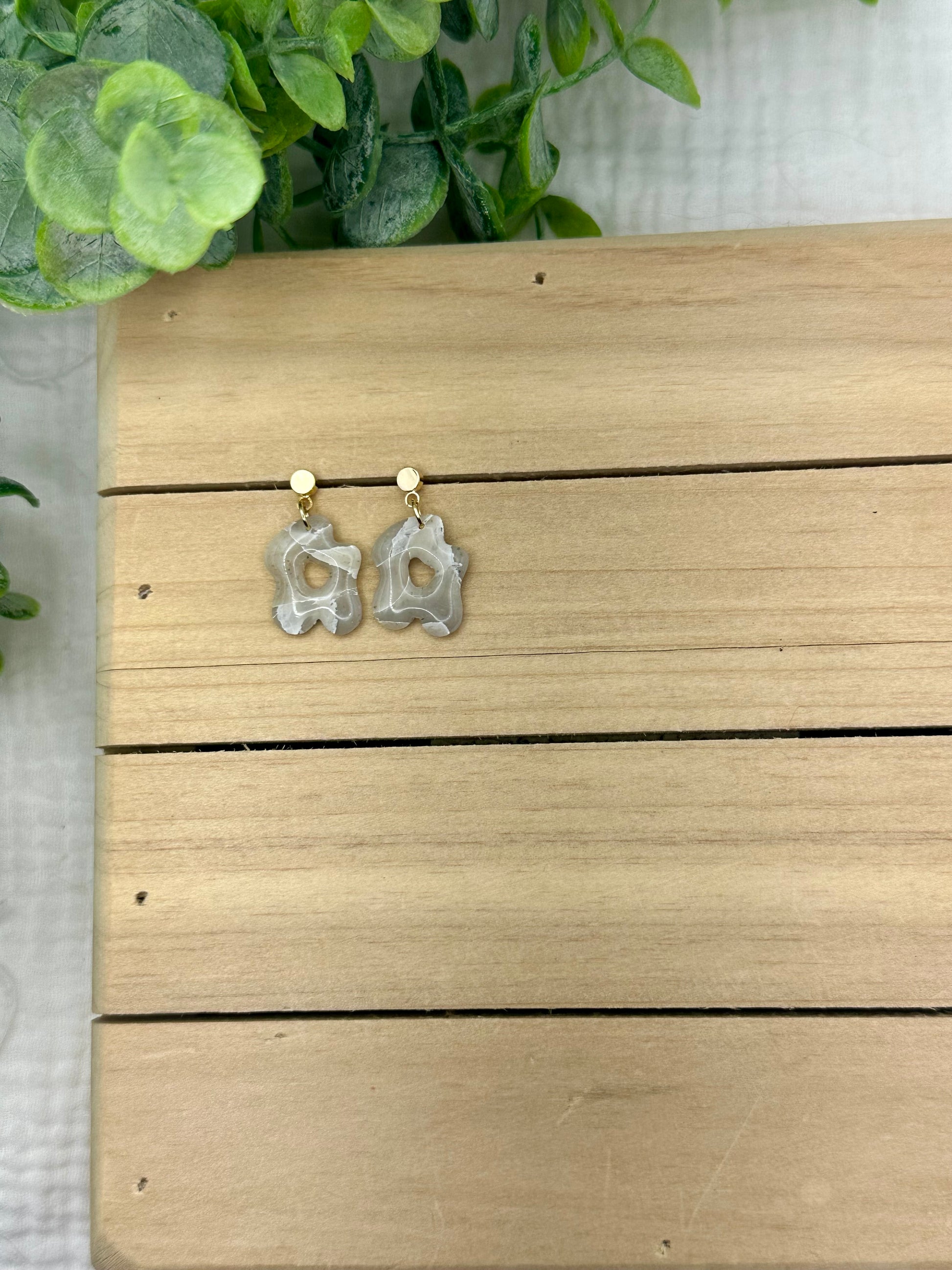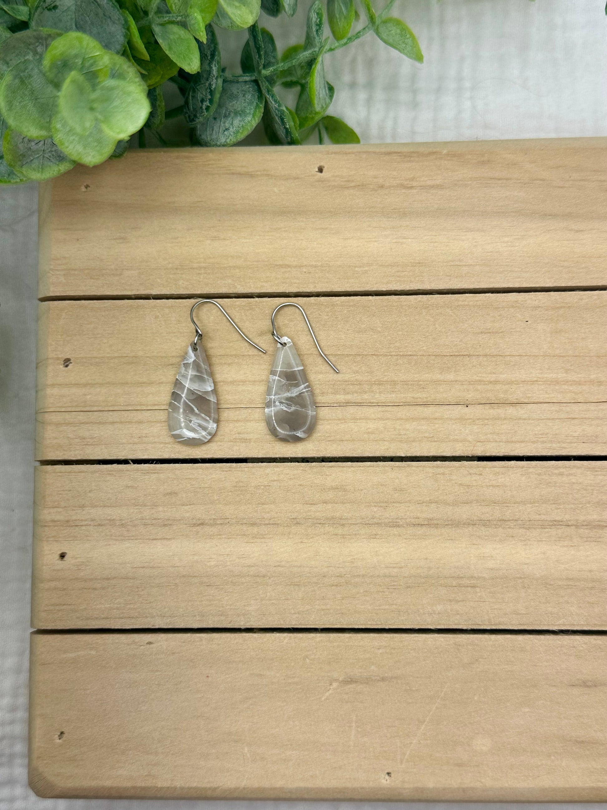 Handmade polymer clay earrings. All on hypoallergenic findings. Stone marbled with a semi translucent effect on gold findings