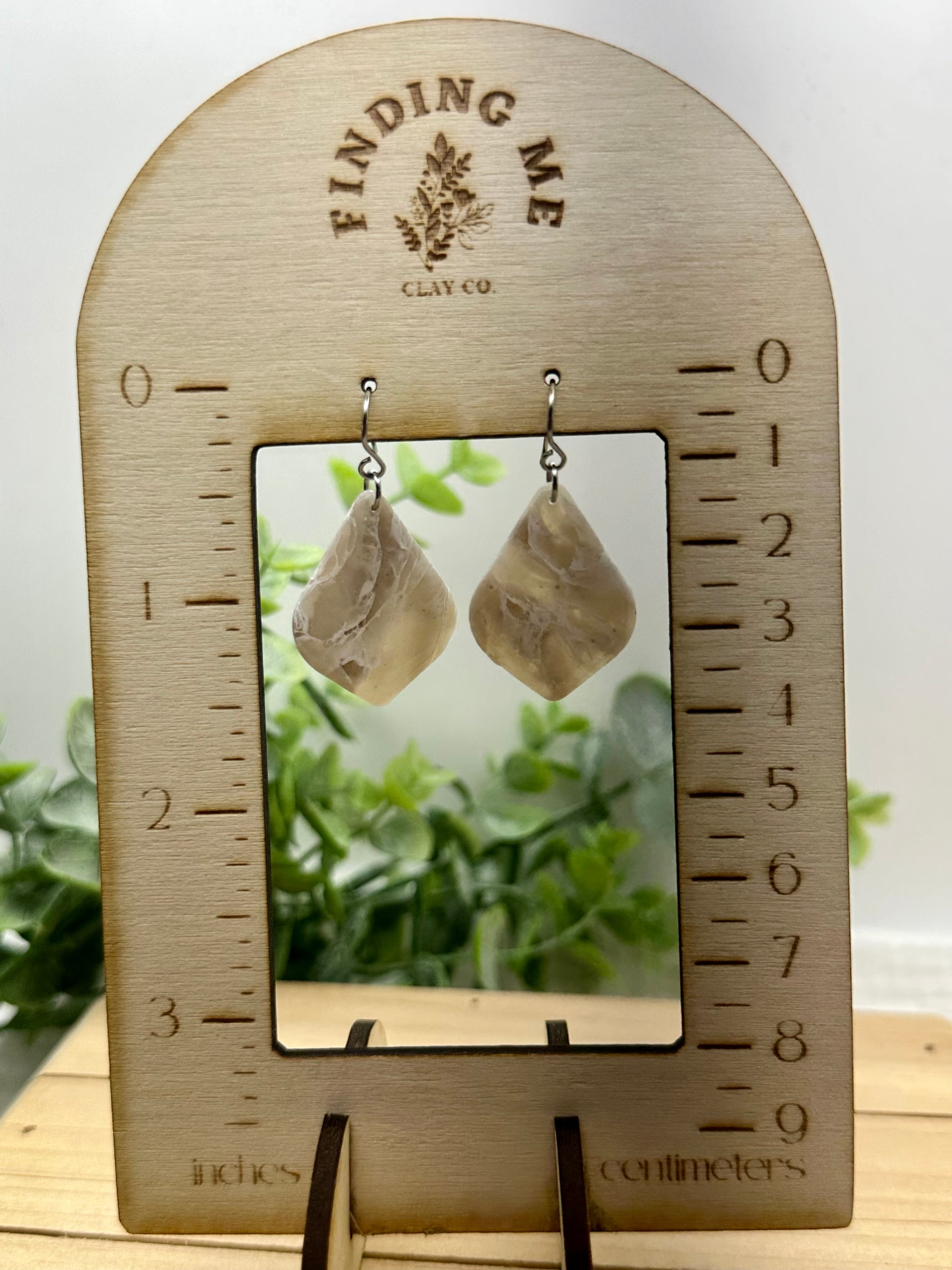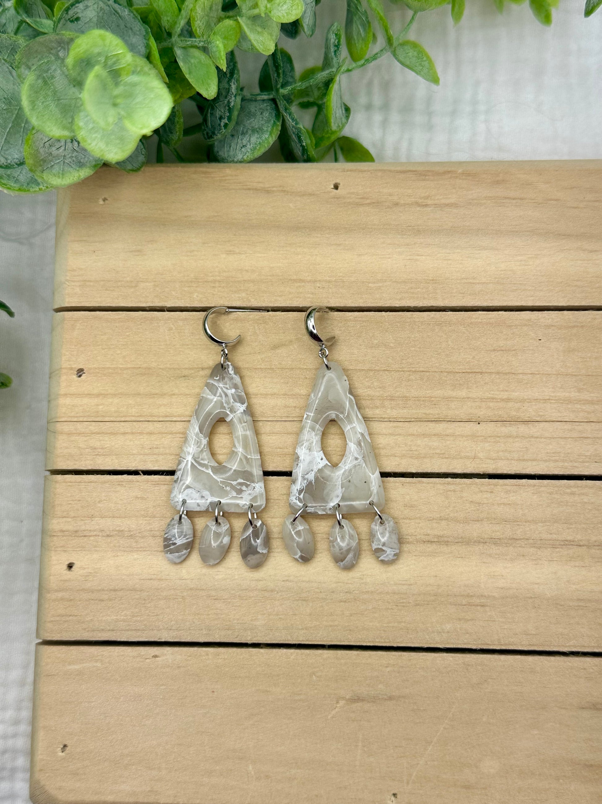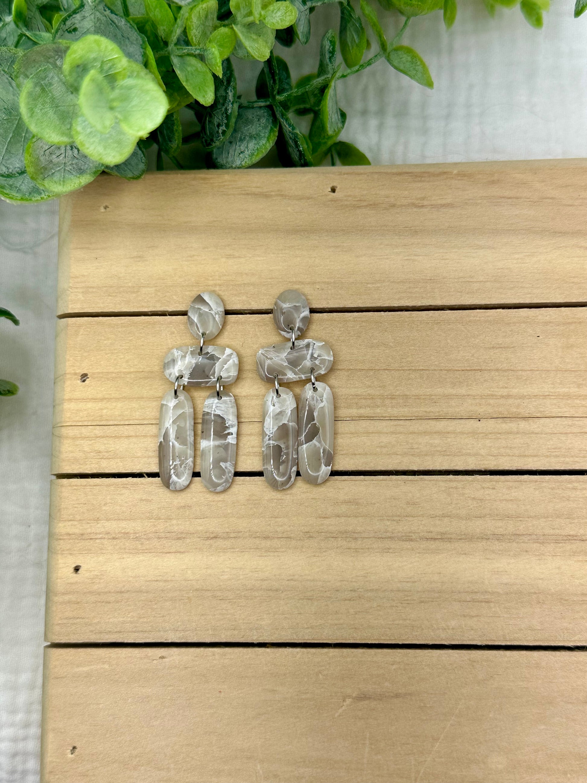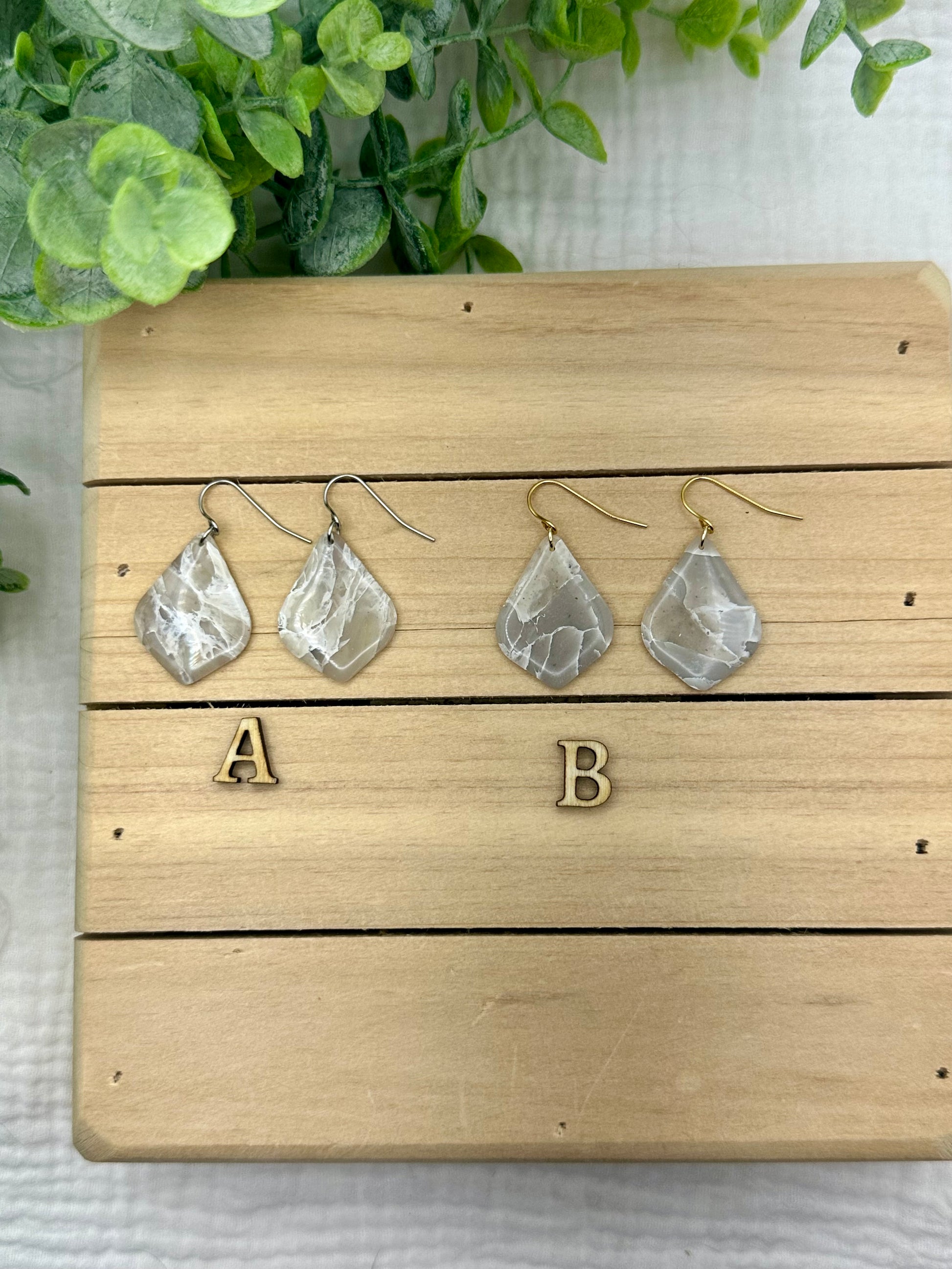 Handmade polymer clay earrings. All on hypoallergenic findings. Stone marbled with a semi translucent effect on gold findings