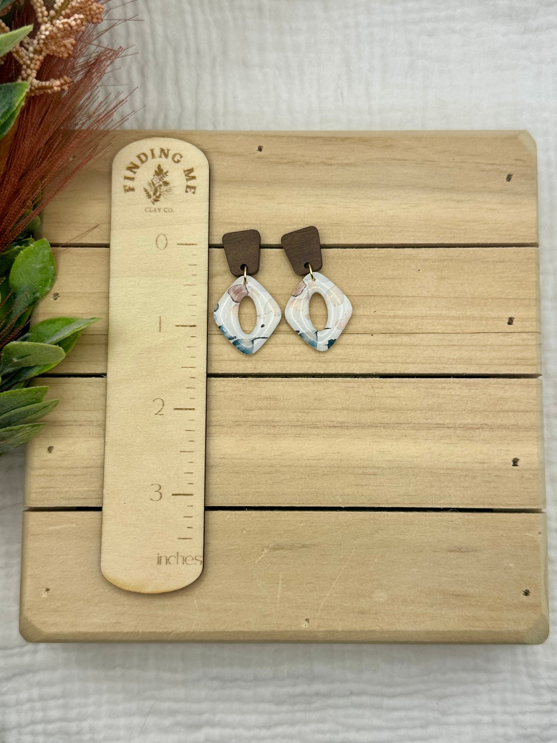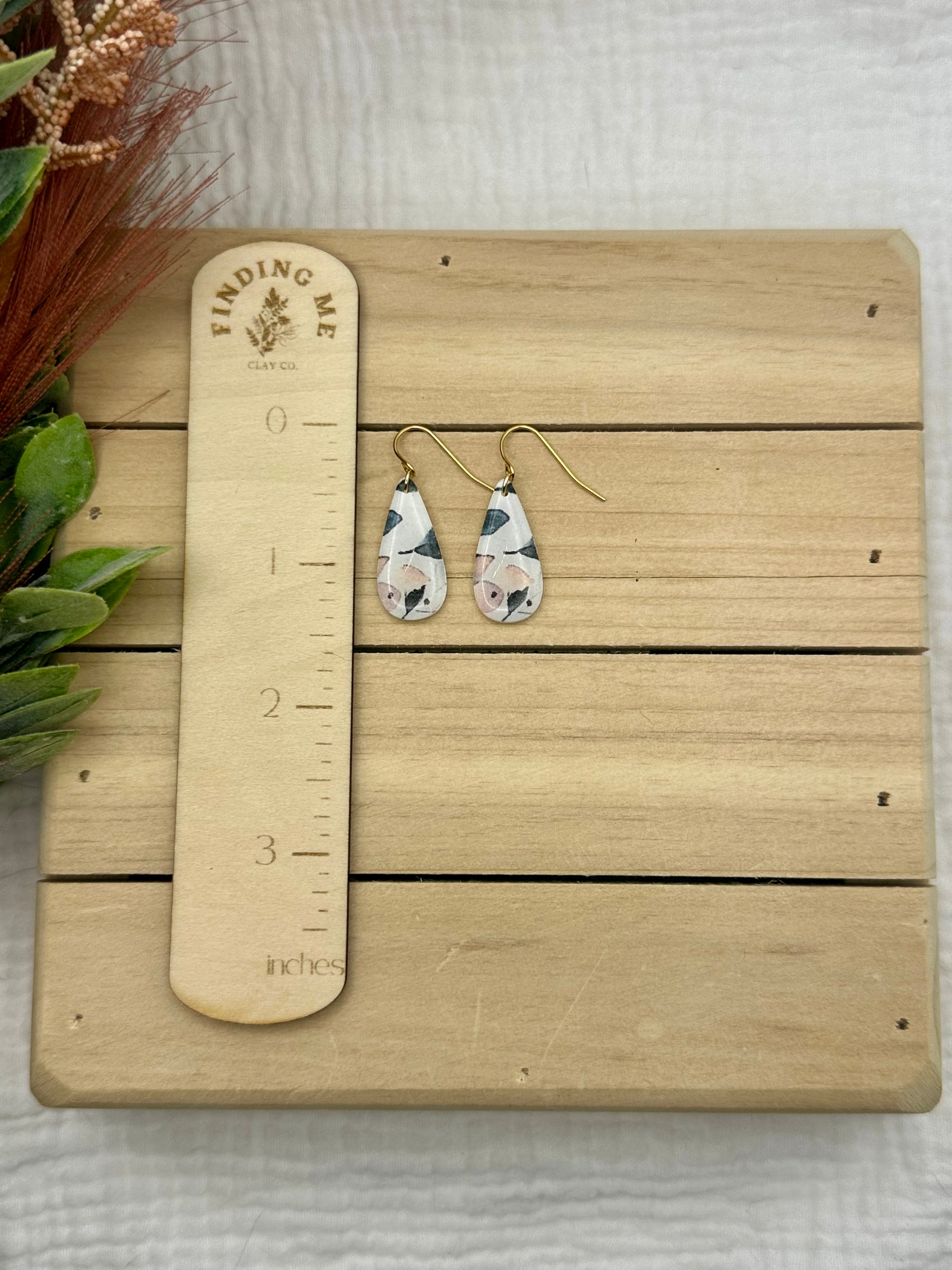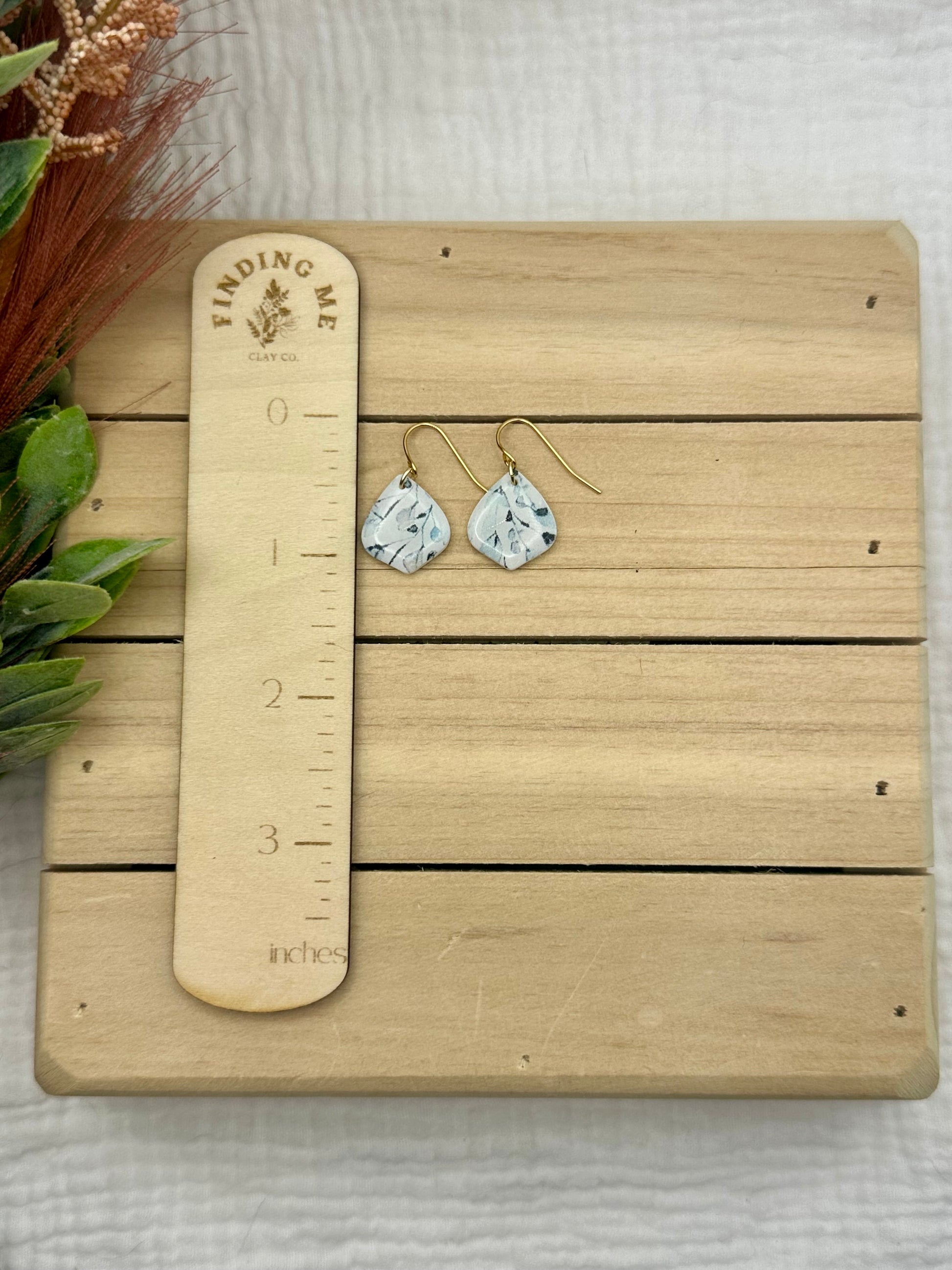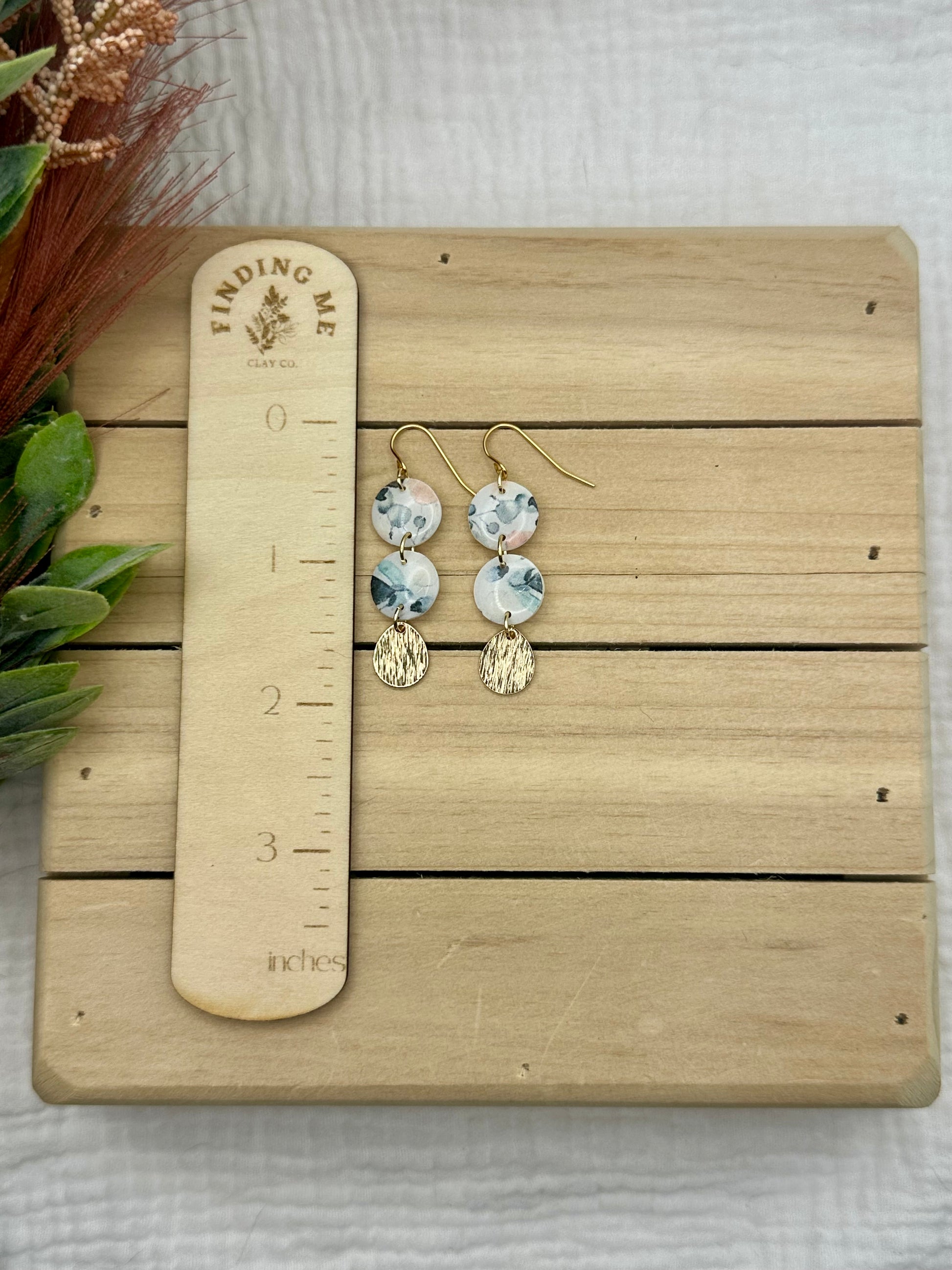 Handmade polymer clay earrings. All on hypoallergenic surgical grade steel findings. Watercolor leaf print on Gold coated surgical steel findings