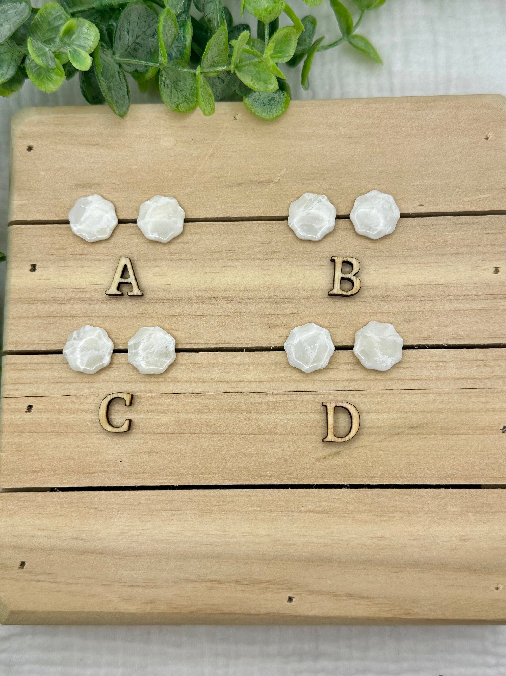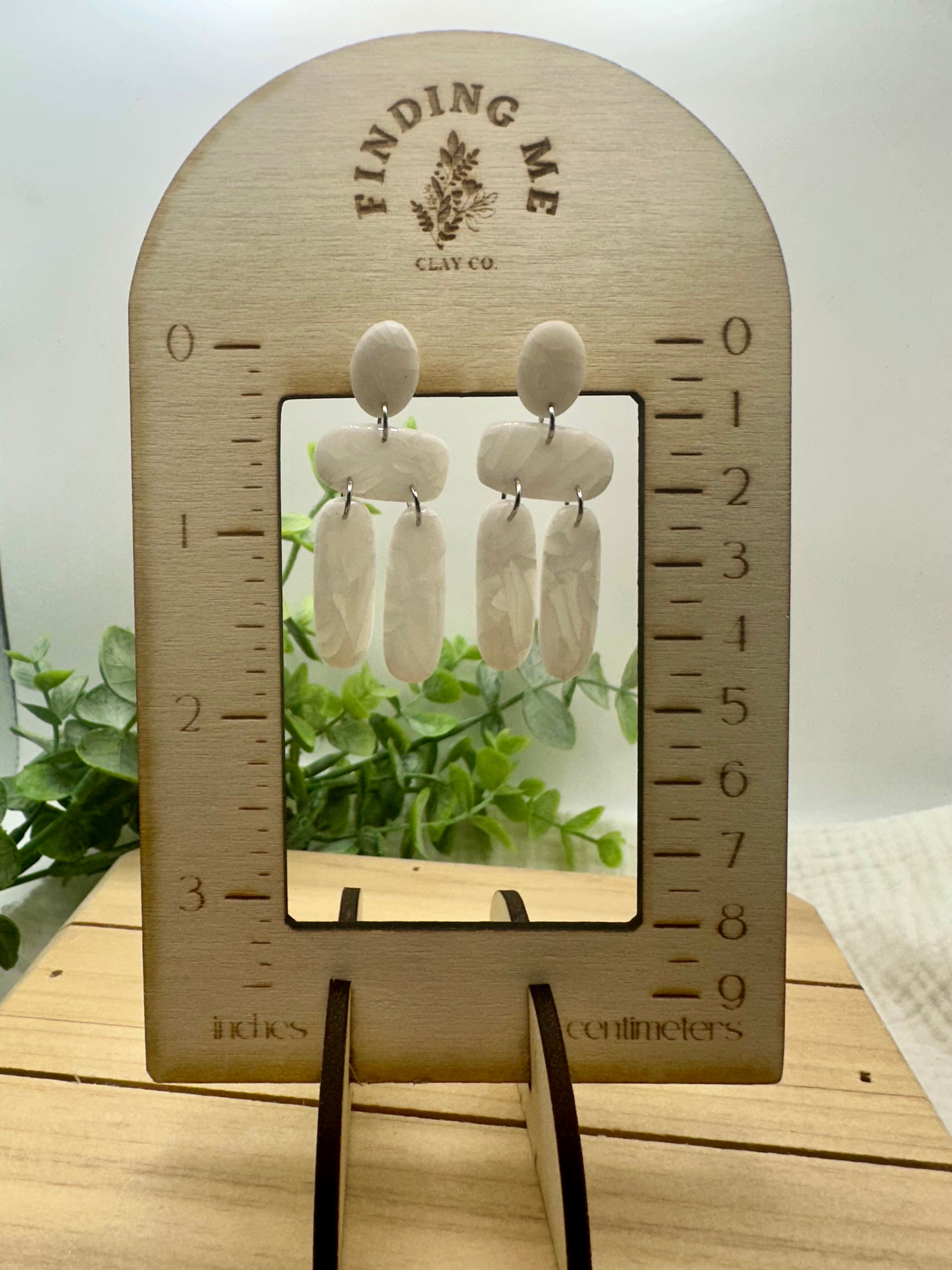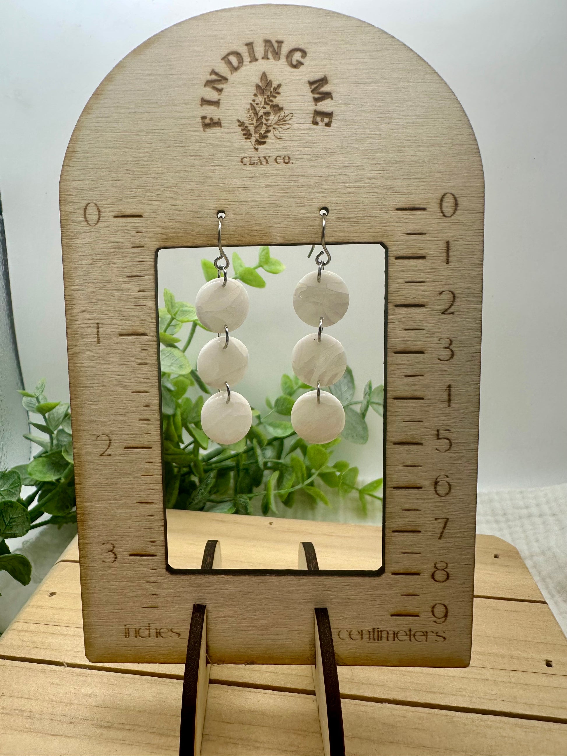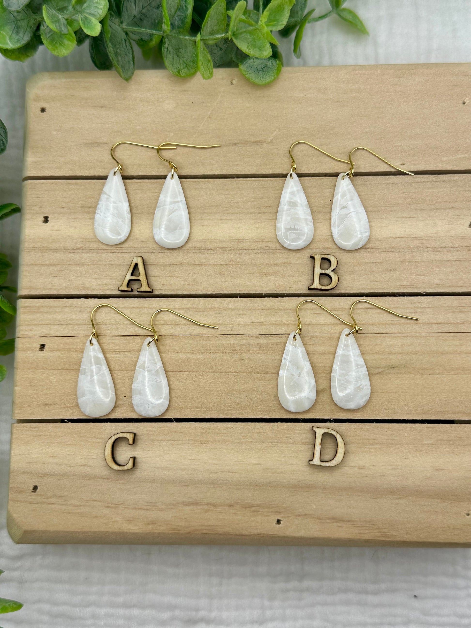 Handmade polymer clay earrings. All on hypoallergenic surgical grade steel findings. White marbled on gold coated findings